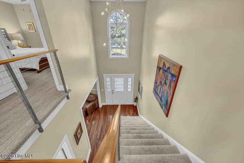 Welcome to Whisper Creek, where comfort and convenience meet everyday luxury. Just two blocks from scenic Wade Park with trails, a pond, wooded paths, and playground, this home is nestled in a sought-after school district and offers the freedom of no HOAbring your boat or RV! The large fenced yard is perfect for children and pets, complete with a screened porch and expansive deck for backyard barbeques & effortless outdoor living. Inside, the gourmet kitchen with 5 burner gas range, pantry, and solid-surface countertops, flows seamlessly into the vaulted great room with stacked stone woodburning fireplace. A formal dining room adds versatility for meals, a study, or home office. The first-floor primary retreat showcases a spa-like bath with tiled shower, soaking tub, dual sinks, and walk-in closet. Upstairs provides room to grow, with 3 bedrooms, 2 full baths, and a spacious FROG - ideal for a media room, playroom, or 5th bedroom. Some additional features of this wonderful home include: ample storage, walk-in attic, 2 garage bays, crawlspace with dehumidifier, and all appliances convey. Close to restaurants, shopping, even sandy beaches & Historic Downtown Wilmington. Move right in & start enjoying all this home & neighborhood have to offer. Seller requires possession through 11/30.