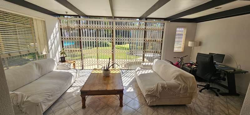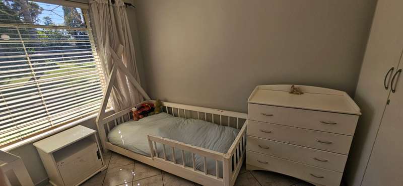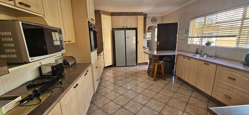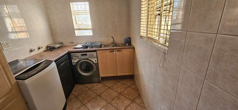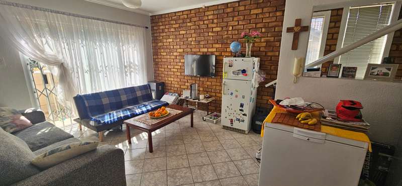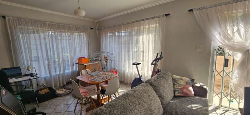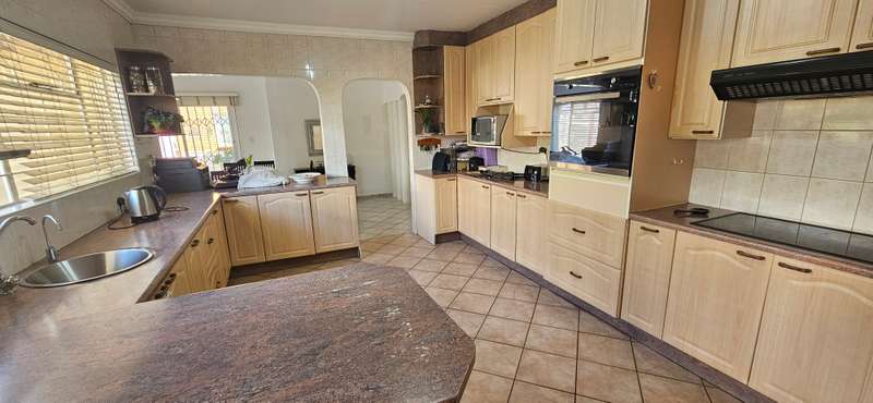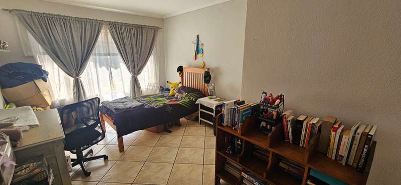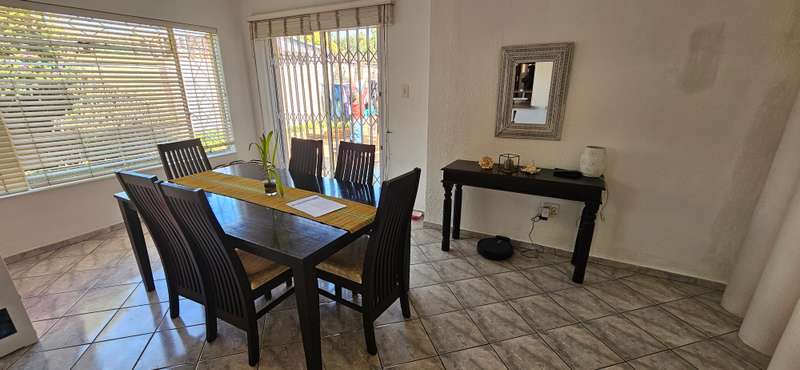 This comfortable home boasts a large kitchen with a separate scullery, big lounge, a dining room that flows into the kitchen and a family room with sliding doors that leads to a beautiful and spacious garden with a pool and braai. There is a paved gazebo and a Koi pond as well. There are 4 well sized bedrooms with built in cupboards and 2 bathrooms (MES). Complete with a double garage and carport for up to 3 vehicles. In addition this home also features a separate duplex flat with it's own entrance. Downstairs has an open plan lounge, dining room, kitchen and a guest toilet. Upstairs is where you will find 2 spacious bedrooms with built in cupboards and 1 bathroom. Th eflat has 1 carport. A well secured property and situated close to schools, shopping centres, churches and so much more at your doorstep.... Call me now for an appointment to view!!