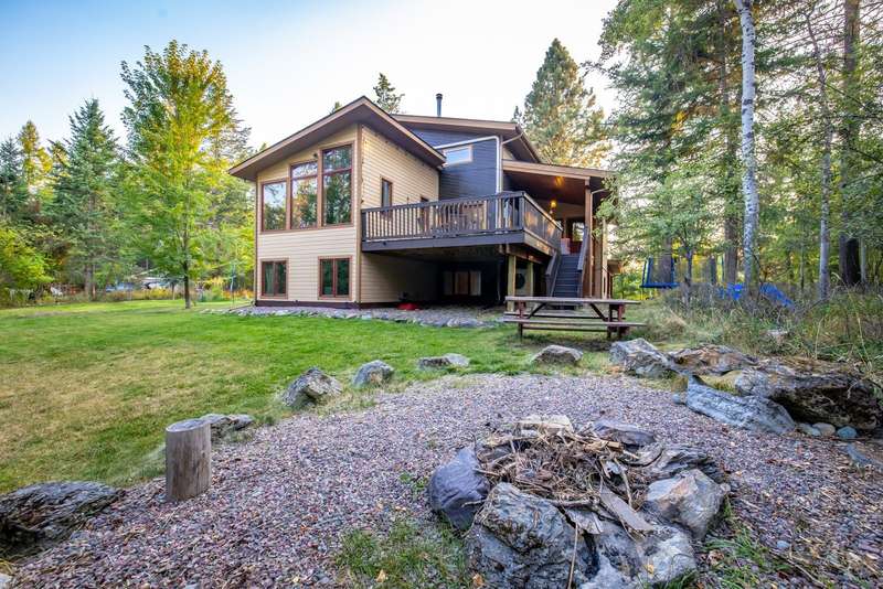Don't miss on this exclusive offering in the quiet and private neighborhood of Blanchard Hollow. Sitting on 1.52 acres with peek a boo views of Glacier Park and Whitefish Mountain, this 5 bedroom 2.5 bath home is a must see. With over 3,200 square feet of thoughtful living space and a covered outdoor patio there is something for everyone. The main level features an updated kitchen with plenty of counter space and new appliances, a large dining area, a large den, one bedroom and a half bath. The upper level primary suite has a full bathroom, walk-in closet, and bonus room that can serve a number of purposes. Downstairs you will find a large flex space, 3 bedrooms, laundry, and a full bath. With a large amount of community space in the neighborhood and access to Blanchard Lake right down the road, this community is a hidden gem while being minutes away from all the Whitefish, Montana has to offer. Recent updates include roof, gutters, kitchen, and windows making it move in ready!