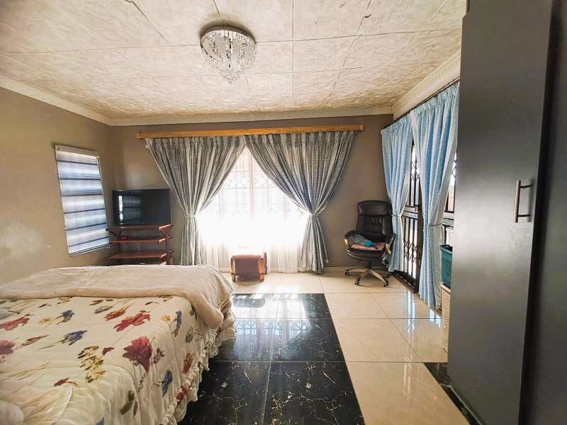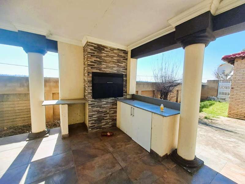 This spacious 5-bedroom home offers generous living with two en-suite bedrooms, built-in cupboards throughout, a full bathroom, and an additional guest toilet. The kitchen includes a scullery and flows into a large TV room and a formal lounge that can double as a dining room. An inviting entrance hall sets the tone for a warm, functional interior ideal for family life and entertaining. The outdoor areas are designed for hosting in style - enjoy the lapa, patio, and a separate entertainment area featuring a built-in braai and fireplace, with an adjacent room ready to be converted into a guest toilet. The garden boasts apple and peach trees. Parking is a breeze with 2 automated garages, a covered carport, and 2 additional open carports. Two solar panels are included in the sale, adding extra value and energy efficiency to this already impressive property. The property is fully fenced and secured with an automated front gate. Contact me for a viewing today!