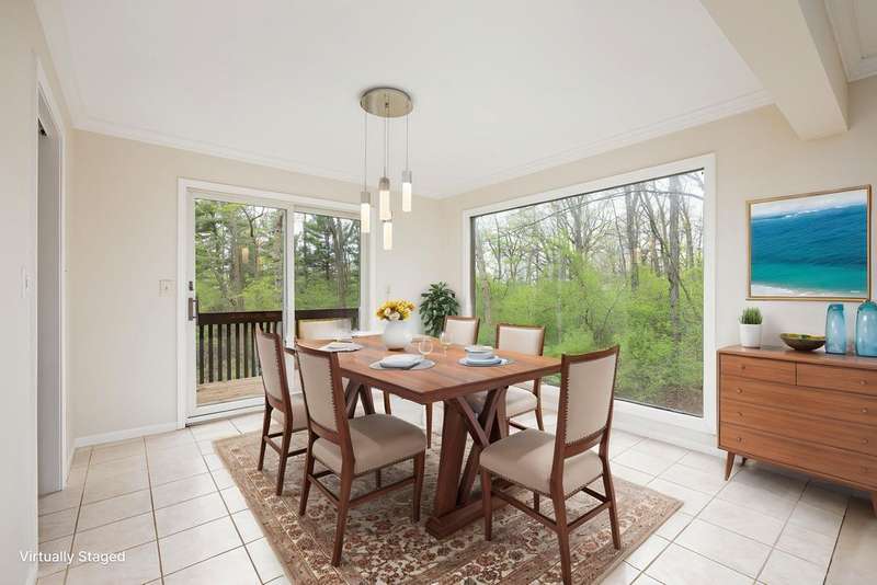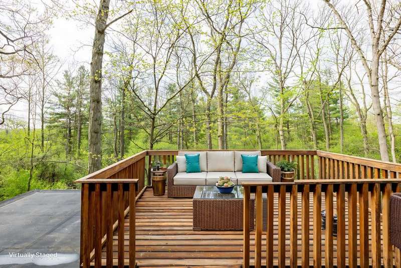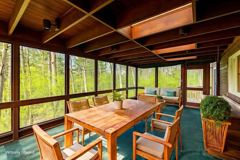 With an up-north vibe, Ann Arbor conveniences and a short stroll to King Elementary (.4 mi) or Greenhills (.6 mi), this light-filled colonial is the perfect retreat. Large windows from every room bring the wooded view inside. Or you can just go out onto any of the decks or screen rooms and be there in person! The bright central kitchen is the hub of the main floor, but the party is down in the walkout basement. The huge real wood-paneled recreation area (with wet bar) also leads to the lower screen house and deck, the 4th bedroom/guest room/office with attached bath, an exercise room and plenty of storage options. Over 3500 sq ft of living space means room for everything. Home Energy Score of 1. Download report at stream.a2gov.org.