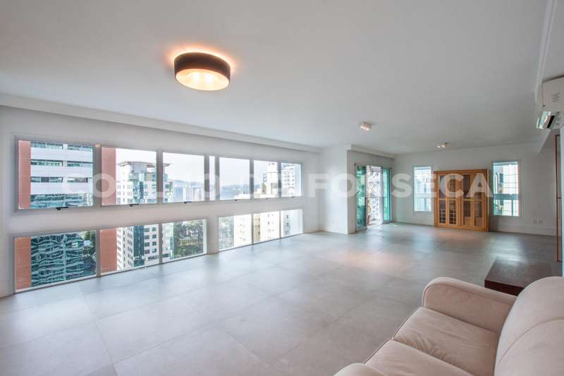 Apartamento super amplo, com 253m², 3 suítes, sendo a master com closet e banheiro senhor e senhora, podendo facilmente ser revertido em mais uma suíte, hidromassagem, ar condicionado, living para vários ambientes, lavabo, elevador privativo, churrasqueira, dependência de empregados, depósito, 4 vagas de garagem, andar alto com vista permanente e muito ensolarado.