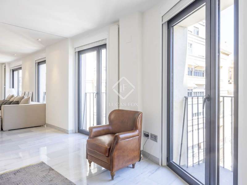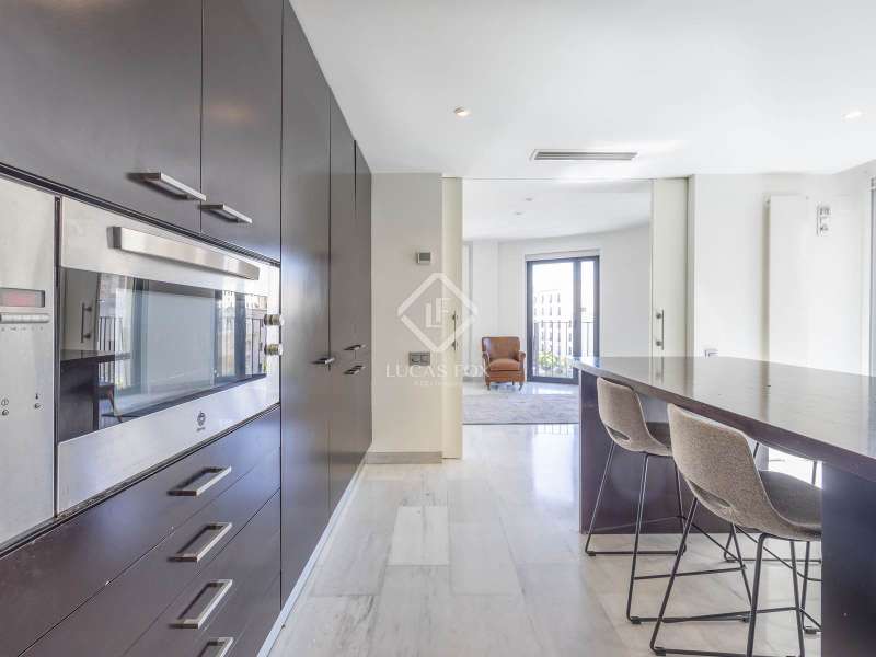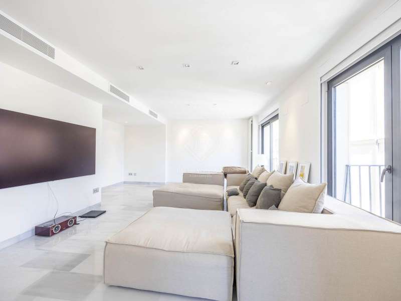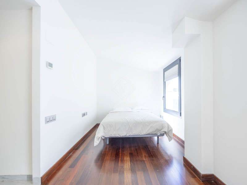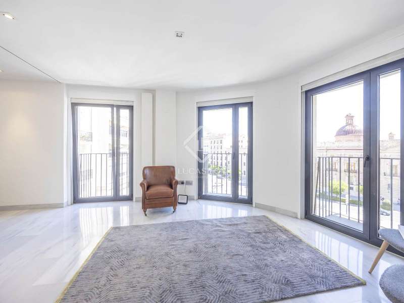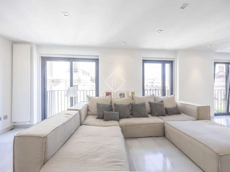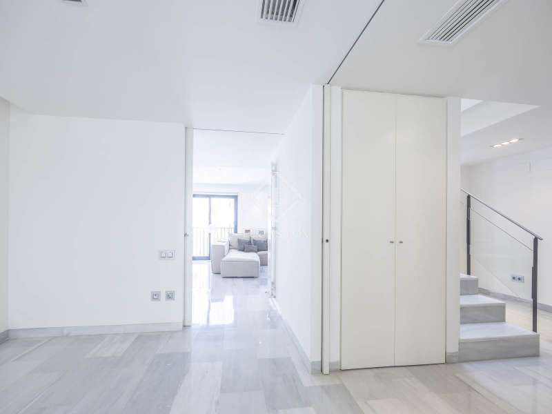 Lucas Fox presents this exclusive duplex apartment with unobstructed views of a charming square on the top floor of a modern building constructed in 2008 in Valencia. This elegant property stands out for its spaciousness, light, and functional design, in a prime location. From the main access , we find a spacious and welcoming entrance hall that leads to the day area. To the right, we find an open-plan floor kitchen, fully equipped and especially bright, thanks to its generous windows overlooking the exterior. Next, we find the spacious living-dining room, a generously sized room with different atmospheres, ideal for entertaining guests or enjoying family time. The large windows in this area provide clear and pleasant views of a beautiful tree-lined square and allow in abundant natural light. There is also a guest toilet on this floor . The white marble floors add a touch of distinction and luminosity to the entire day area. On the upper floor is the night area. First, there is the privileged main bedroom , which is very bright and features a practical dressing area and an elegant private bathroom. This floor is completed by three additional spacious bedrooms, all exterior and well-ventilated, and two complete bathrooms serving these rooms. There is also a separate utility room , ideal for daily use. This entire floor features wooden floors, providing warmth and comfort. The property is equipped with ducted air conditioning, high-performance exterior carpentry with thermal and acoustic insulation, and quality finishes throughout. It also includes a parking space in the same building with direct access . Contact us for more information.