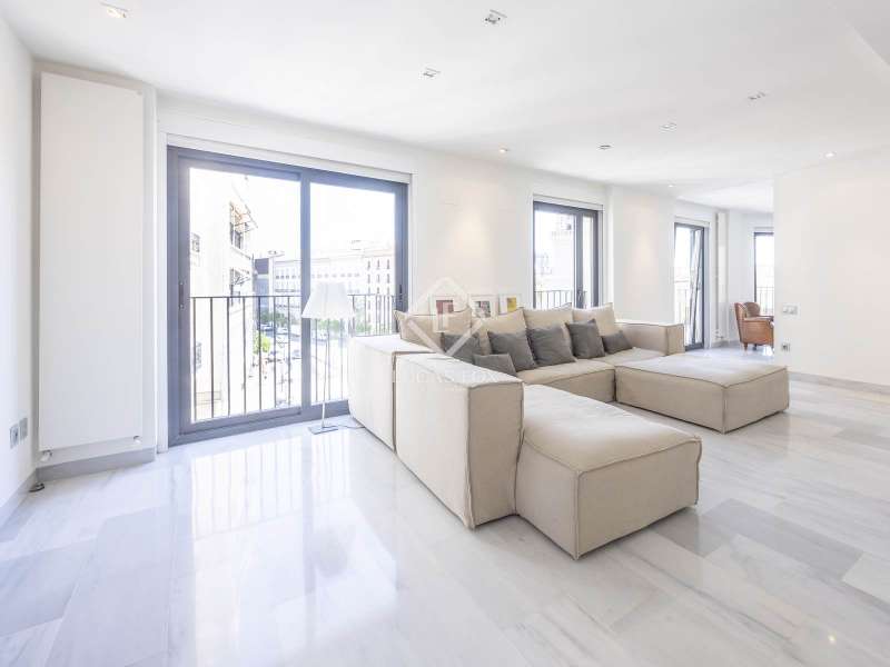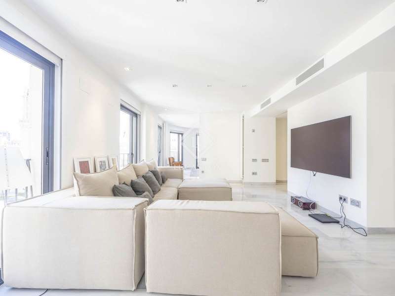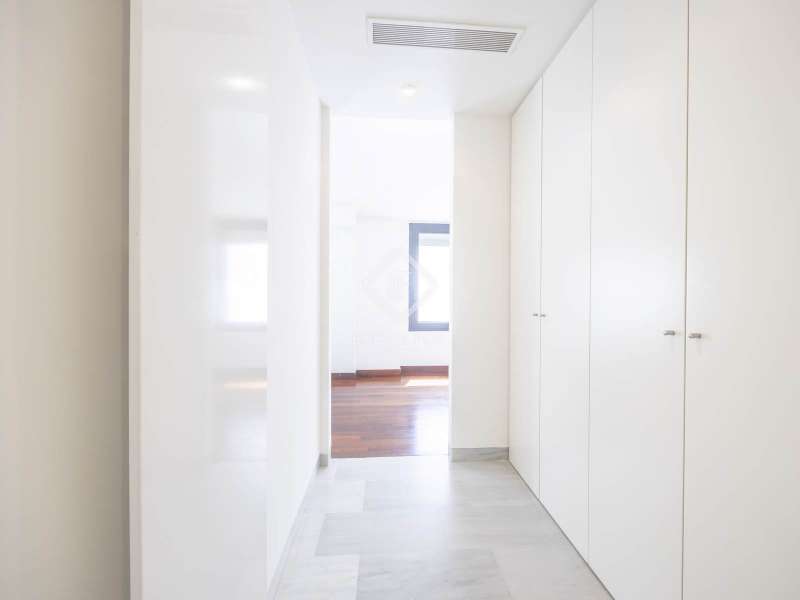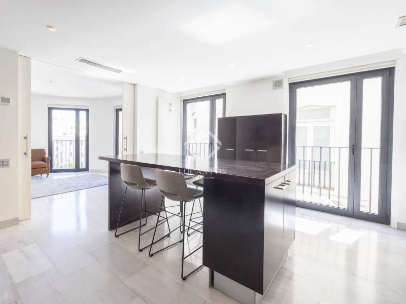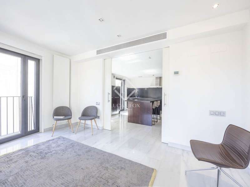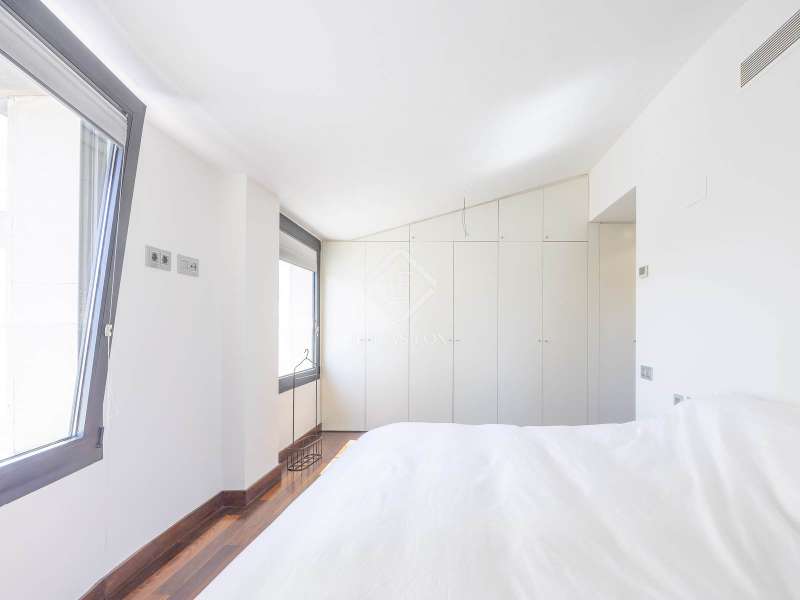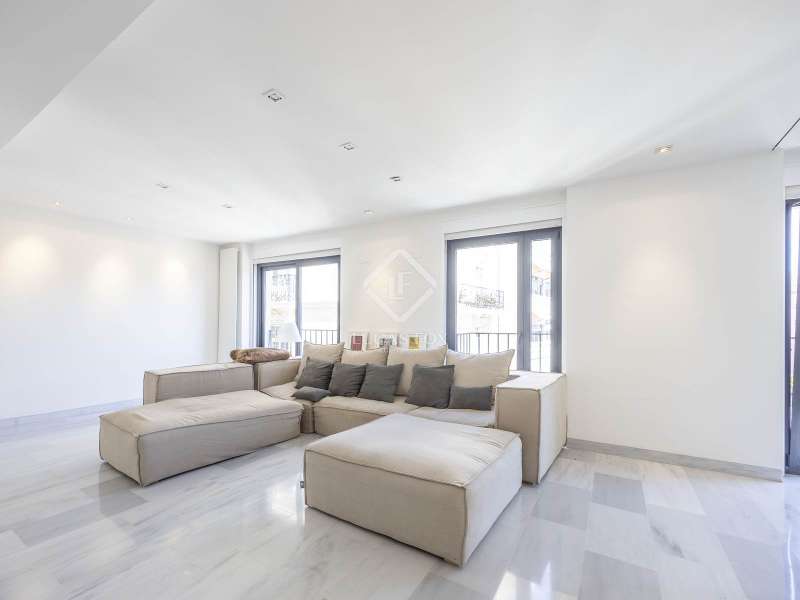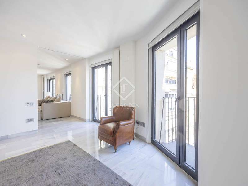 Lucas Fox presents this exclusive duplex apartment with unobstructed views of a charming square on the top floor of a modern building constructed in 2008 in Valencia. This elegant property stands out for its spaciousness, light, and functional design, in a prime location. From the main access , we find a spacious and welcoming entrance hall that leads to the day area. To the right, we find an open-plan floor kitchen, fully equipped and especially bright, thanks to its generous windows overlooking the exterior. Next, we find the spacious living-dining room, a generously sized room with different atmospheres, ideal for entertaining guests or enjoying family time. The large windows in this area provide clear and pleasant views of a beautiful tree-lined square and allow in abundant natural light. There is also a guest toilet on this floor . The white marble floors add a touch of distinction and luminosity to the entire day area. On the upper floor is the night area. First, there is the privileged main bedroom , which is very bright and features a practical dressing area and an elegant private bathroom. This floor is completed by three additional spacious bedrooms, all exterior and well-ventilated, and two complete bathrooms serving these rooms. There is also a separate utility room , ideal for daily use. This entire floor features wooden floors, providing warmth and comfort. The property is equipped with ducted air conditioning, high-performance exterior carpentry with thermal and acoustic insulation, and quality finishes throughout. It also includes a parking space in the same building with direct access . Contact us for more information.