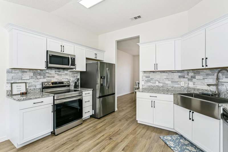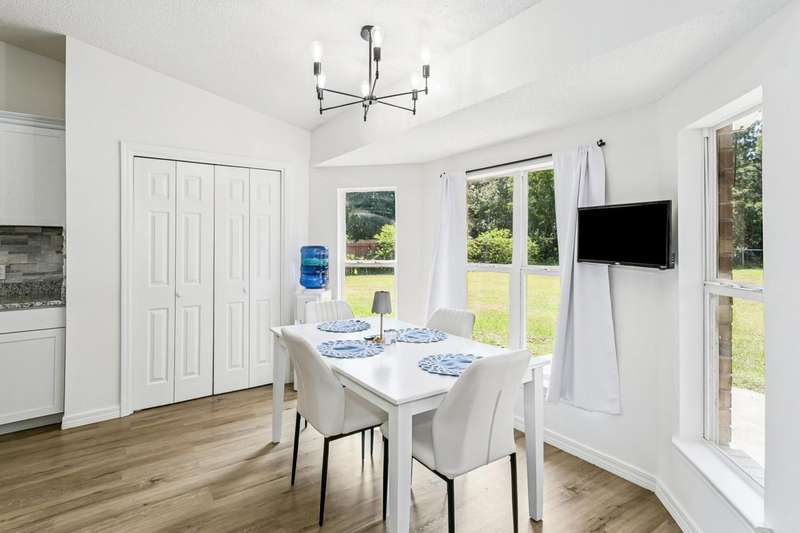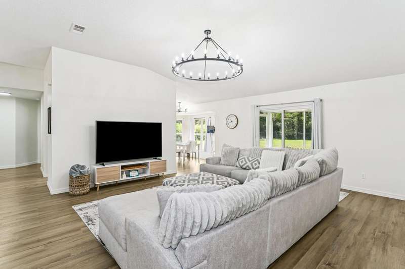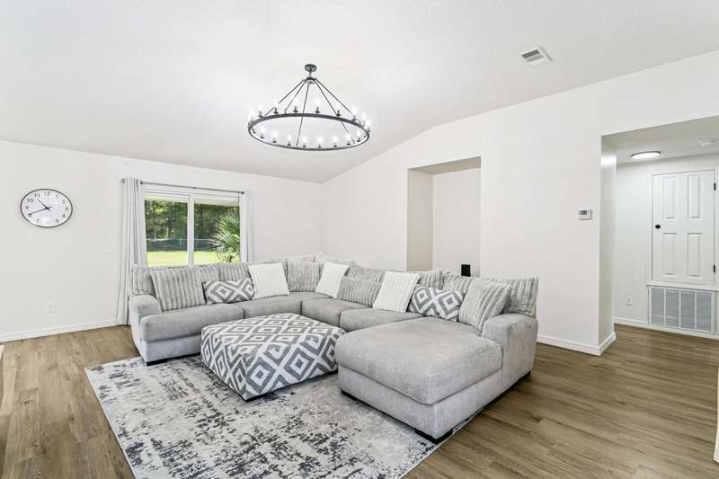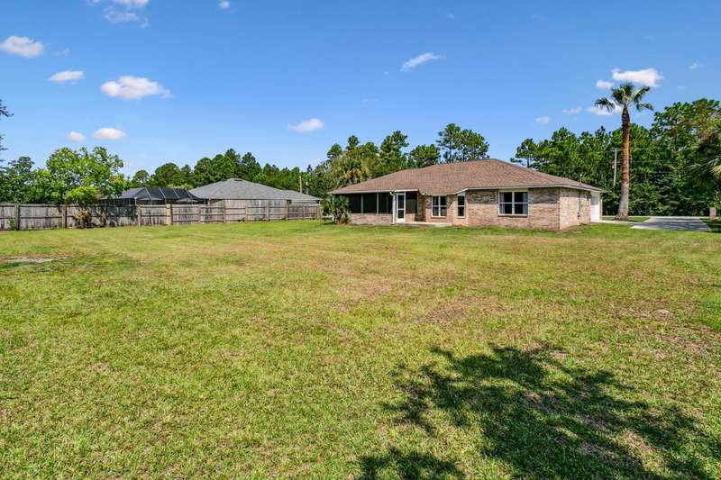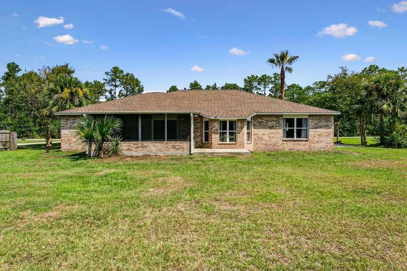 Welcome to this spacious and move-in ready 4BR/2BA, split floorplan home offering 2,129 square feet of thoughtfully designed living space. Nestled on a generous 0.55-acre lot, this property combines comfort, style, and convenience. Step inside to find luxury vinyl plank (LVP) flooring throughout and an updated kitchen featuring modern finishes, sleek countertops, and stainless steel appliances. Both bathrooms have also been tastefully renovated, offering a fresh, contemporary feel. The home's open layout provides flexible living and dining options, while large windows fill the space with natural light. Outside, enjoy the expansive yard or relax in the screened porch. Conveniently located just minutes from the interstate, it's an easy commute to nearby beaches and military bases.