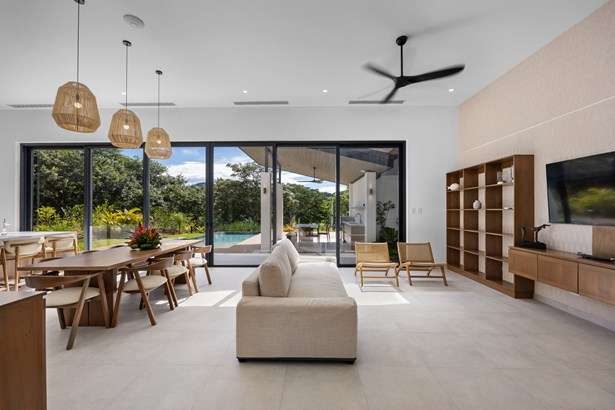 Casa Aguasalada: This brand-new Casa Aguasalada is a magnificent opportunity to own a piece of paradise! This luxurious residence is located in front of hole #16 of the renowned Robert Trent Jones II Golf Course at Reserva Conchal in the closest community to the beach. Aguasalada is a stunning 4-bedroom, 5 full bathroom and 2 half bath home that boasts 4769 sq ft of living space on 1321.56m2 of land and offers a modern tropical design with teak accents throughout, providing ample room for entertaining guests and family. The bedrooms are separated in their own wing, ensuring privacy, and the common areas are open and spacious. Each bedroom has its own ensuite bathroom so every guest is happy!The common area spaces boast breathtaking views of the lush tropical surroundings, offering a unique opportunity to observe the local wildlife, such as monkeys, parrots, iguanas, and deer, in their natural habitat. Floor-to-ceiling glass windows provide a front-row seat to the stunning scenery, creating a seamless indoor-outdoor experience for guests. Enjoy the peace and tranquility of the tropical paradise while lounging in the comfort of the common spaces.The home's outdoor area is designed for ultimate relaxation, with a stunning infinity pool that overlooks the golf course, a large covered kitchen, BBQ and dining area for outdoor dining, and a modern kitchen with granite countertops and wood cabinetry. It's only a 5-minute walk from the Beach Club and the famous white sands of Playa Conchal beach, making it the perfect place for beach lovers.Reserva Conchal features 2300 acres to explore with A+ amenities! There is a 60,000 sq ft gorgeous Beach Club, featuring two sleek pools, state-of-the-art air conditioned fitness center, towel service, complimentary use of kayaks, stand up paddle boards, bikes, a playground and soccer field for the children, miles of hiking and biking trails, the beachside Catalinas Restaurant, an exclusive rooftop dining space, a brand-new poolside pizzeria, and daily social activities. The Westin Resort and Spa and the brand new W Hotel are also located in Reserva Conchal. Owners receive 25% discounts at all their restaurants and the Spa.It's worth mentioning that, although it's not included at this price, it's possible and permitted to add an apartment over the garage, providing even more space and versatility. Don't miss out on this incredible opportunity to own a piece of tropical paradise!If you are looking for a place to call home or for a vacation rental property that offers modern luxury with plenty of space with awesome views, this unit is the one for you! Located 45 mins from Liberia Airport, and less than 5 mins from 2 International Schools. Please contact us to schedule a showing.HOA: $338/month, includes water.