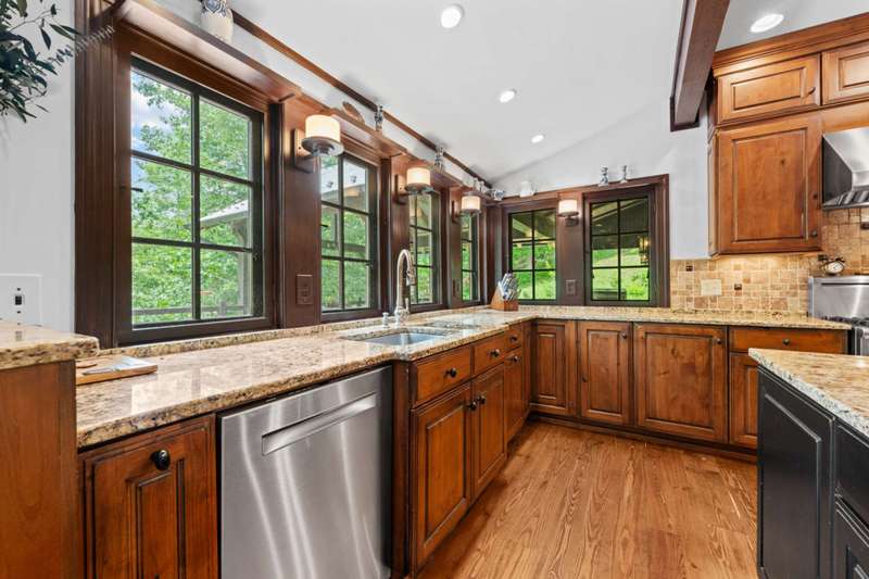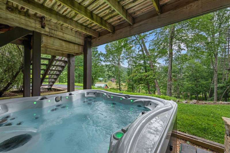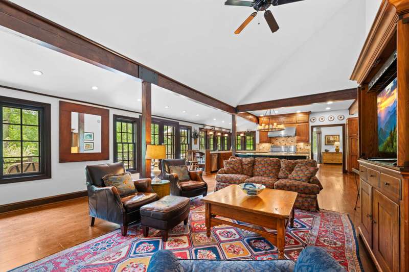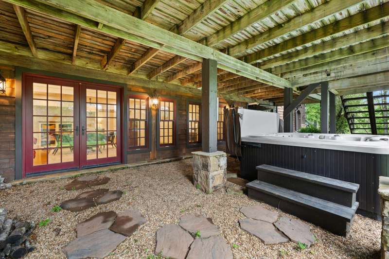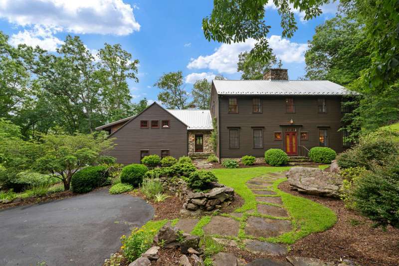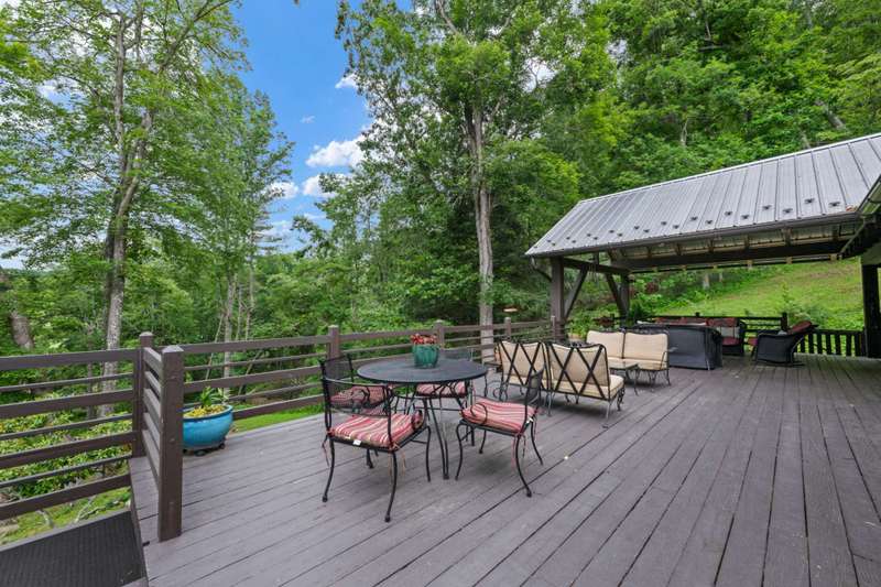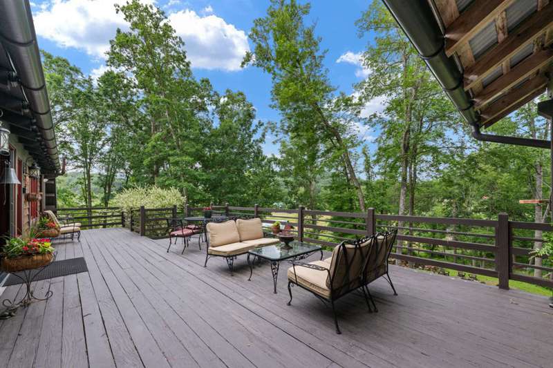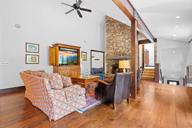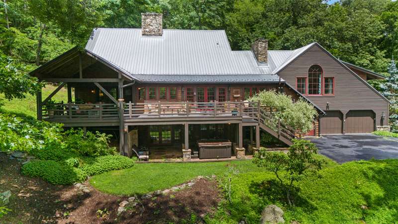 Perched above the Watauga River and only minutes from the Mast General Store and Valle Crucis Park, this 4-bedroom, 5-bath New England saltbox style estate offers over 6 acres. The setting promises rare privacy without surrendering the charm of one of the High Country's most beloved communities. A gracious foyer opens to a dramatic great room where vaulted, timber-beamed ceilings soar above a stacked-stone fireplace. French doors invite gatherings onto an expansive rear deck, seamlessly knitting the indoor and outdoor living spaces. Centered on entertaining, the chef's kitchen showcases granite worktops, stainless appliances, and a colossal island with bar seating and prep sink. Just a half-flight up from the great room, with its own wing, the primary suite frames postcard views and offers a luxurious en-suite bath with heated flooring, dual vanities, a soaking tub, and a walk-in steam shower. A dual-entry dining room with adjoining sitting area flows to a covered deck for al-fresco cocktails and conversation. Completing the main level is a spacious guest room linked to a Jack-and-Jill full bath, along with a mud-laundry room with sink, storage, and exterior entry, perfect after time spent in the nearby garden shed. Just a few steps down, from the great room, you'll find access to the oversized two-car garage. On the upper level, 2 generous guest suites each boast an ensuite bath with tub and separate shower, while a charming dormered bonus room serves perfectly as extra sleeping quarters, studio, or study. Descending from the foyer, a shiplap-wrapped family room hosts movie nights, ping-pong, and card games. Two versatile rooms-ideal for overflow guests or hobbies, flank a full bath. French doors open to a stone patio with a steaming hot tub. Only steps away, spend starlit evenings by the dancing flames of the natural stone fire pit. Timeless architecture, luxury finishes, and an unmatched Valle Crucis address make this estate equally suited as a primary residence, a coveted retreat, or a vacation rental. Call today for additional information or your private viewing of our listing M178.