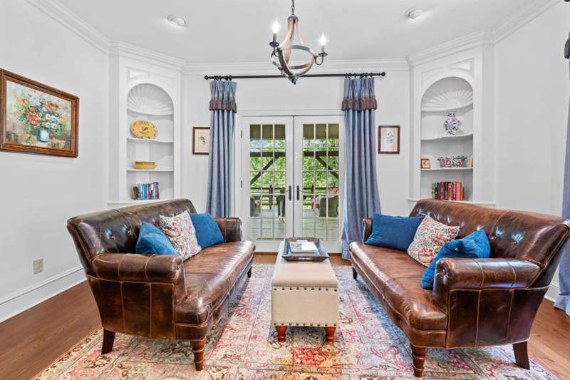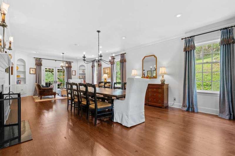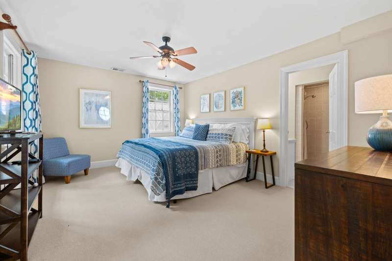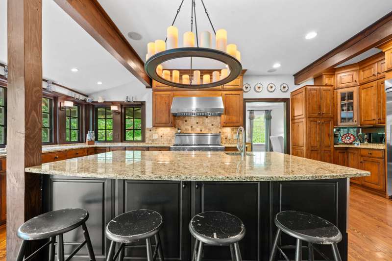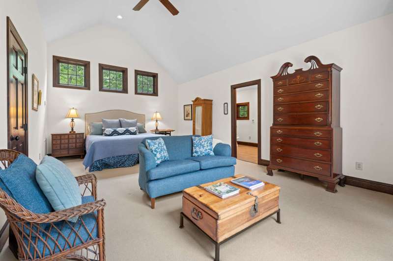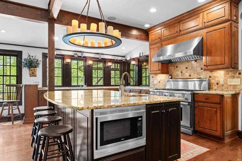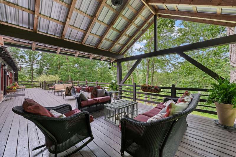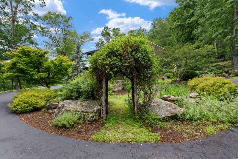 Perched above the Watauga River and only minutes from the Mast General Store and Valle Crucis Park, this 4-bedroom, 5-bath New England saltbox style estate offers over 6 acres. The setting promises rare privacy without surrendering the charm of one of the High Country's most beloved communities. A gracious foyer opens to a dramatic great room where vaulted, timber-beamed ceilings soar above a stacked-stone fireplace. French doors invite gatherings onto an expansive rear deck, seamlessly knitting the indoor and outdoor living spaces. Centered on entertaining, the chef's kitchen showcases granite worktops, stainless appliances, and a colossal island with bar seating and prep sink. Just a half-flight up from the great room, with its own wing, the primary suite frames postcard views and offers a luxurious en-suite bath with heated flooring, dual vanities, a soaking tub, and a walk-in steam shower. A dual-entry dining room with adjoining sitting area flows to a covered deck for al-fresco cocktails and conversation. Completing the main level is a spacious guest room linked to a Jack-and-Jill full bath, along with a mud-laundry room with sink, storage, and exterior entry, perfect after time spent in the nearby garden shed. Just a few steps down, from the great room, you'll find access to the oversized two-car garage. On the upper level, 2 generous guest suites each boast an ensuite bath with tub and separate shower, while a charming dormered bonus room serves perfectly as extra sleeping quarters, studio, or study. Descending from the foyer, a shiplap-wrapped family room hosts movie nights, ping-pong, and card games. Two versatile rooms-ideal for overflow guests or hobbies, flank a full bath. French doors open to a stone patio with a steaming hot tub. Only steps away, spend starlit evenings by the dancing flames of the natural stone fire pit. Timeless architecture, luxury finishes, and an unmatched Valle Crucis address make this estate equally suited as a primary residence, a coveted retreat, or a vacation rental. Call today for additional information or your private viewing of our listing M178.