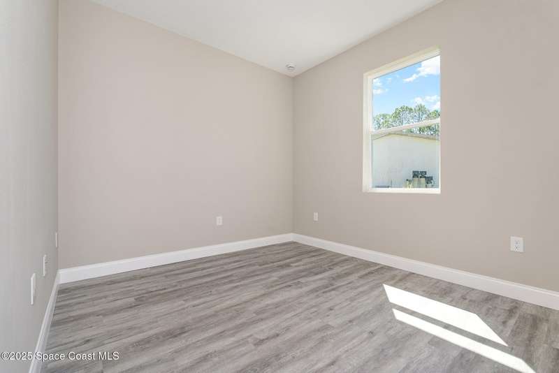 SPECIAL PRICING ON THIS MOVE-IN READY HOME WITH FLEX CASH AND NO CLOSING COST LOANS AVAILABLE. One or more photo(s) has been virtually staged-New Construction. This Luxurious 4-bedroom, 2 Bath Property is exquisitely built with all of the upgrades nestled in the heart of Palm Bay. Inside you will find a wonderfully open floor plan perfect for gatherings and entertaining. The capacious Chef's Kitchen is stylishly equipped with an island, solid wood cabinets, stainless steel appliances and ample storage. The contemporary living space is bursting with natural light and a flowing layout that is inviting and relaxing. Luxuriate in the vast Primary Suite that offers a collection of modern conveniences. This beautiful house is full of INCLUDED upgrades: solid wood soft close cabinets in the kitchen and in the bathrooms, luxury vinyl plank flooring (no carpet), and floor-to-ceiling tiles in the showers, granite countertops in the kitchen and baths, 9'4'' ceilings, 8-foot doors