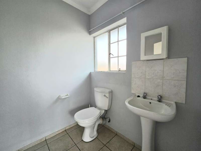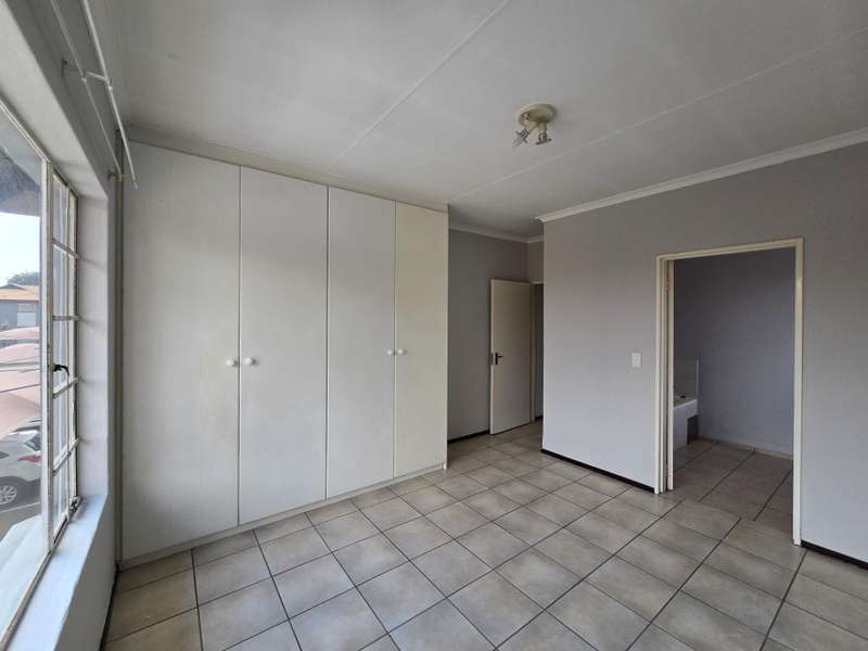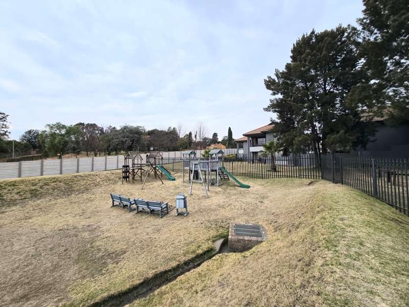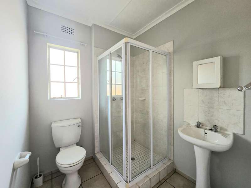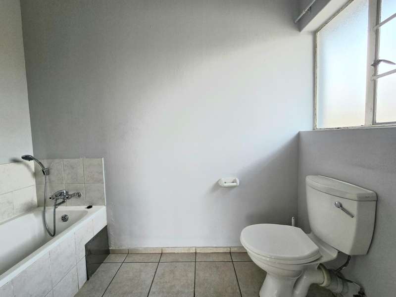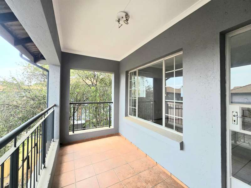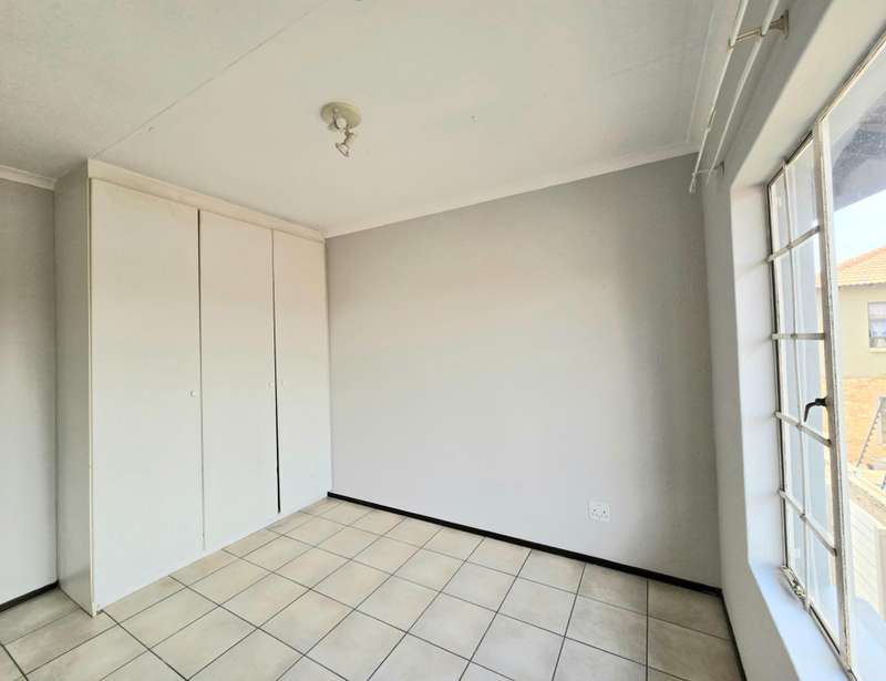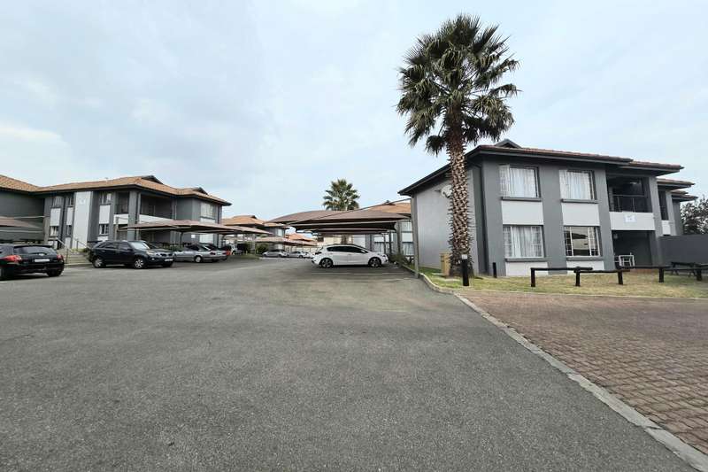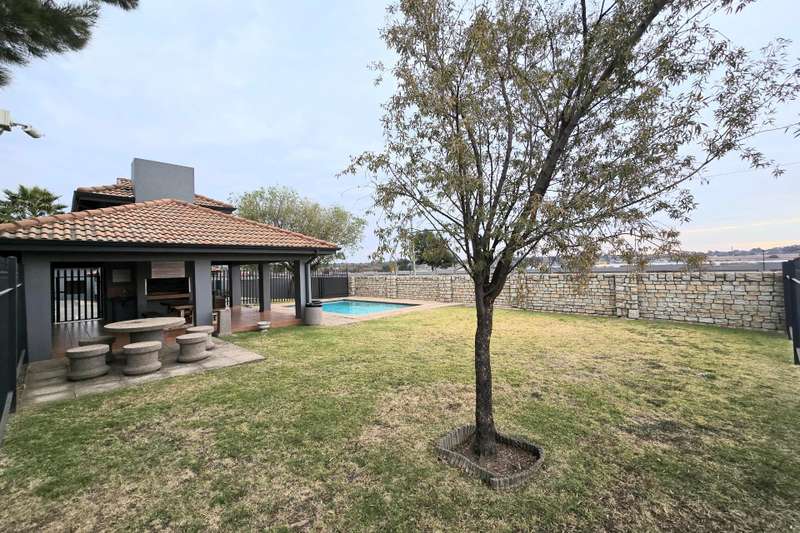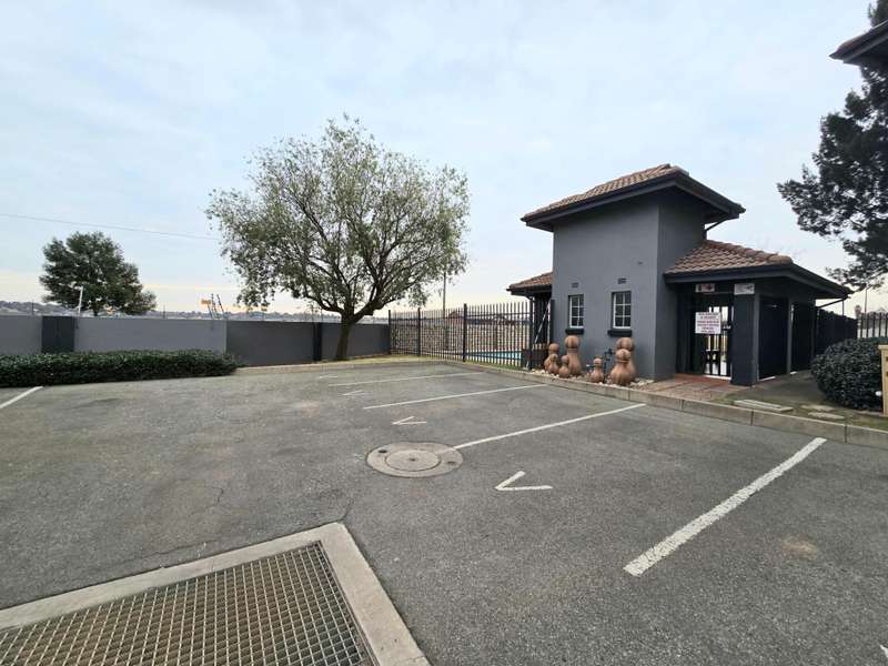 2 Bedroom, 2 Bathroom, First floor, 80sqm Townhouse. Open plan kitchen and lounge area. En-suite bathroom. Built-in-cupboards. Covered patio. 1 x Covered parking, 1 x open parking including visitor's parking. Estimate Levies R1300pm Estimate Rates R600pm Kids play area. Pool with braai and entertainment area.
