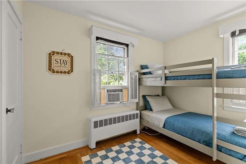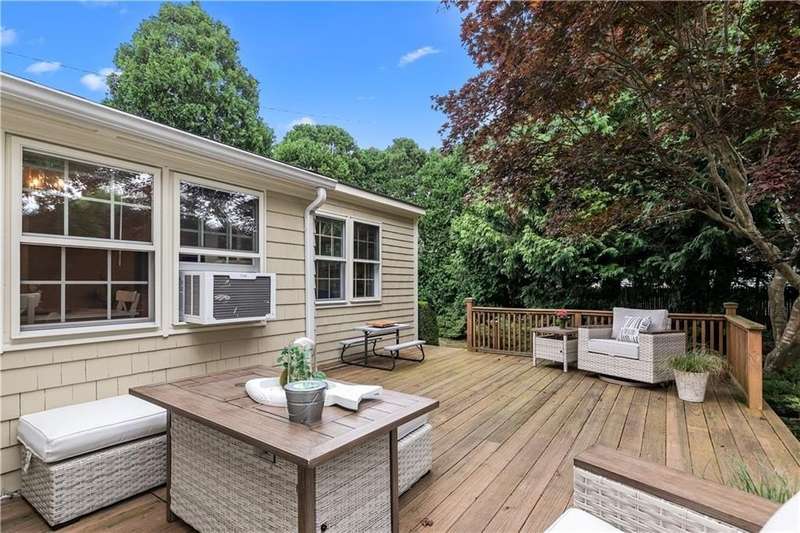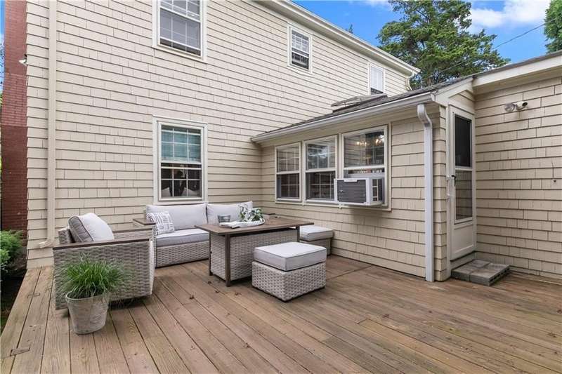 Tucked in a quiet neighborhood, this beautiful fully furnished colonial is an easy walk to either Bellevue Avenue or famed Cliff walk. Great sized yard with mature trees and landscaping which surround a large private deck. Spread out over 3 floors with kitchen, dining area, family room, half bath and office on the first floor. The second floor features a large primary bedroom with in-suite bathroom and King size bed. Two additional bedrooms, one with a Queen bed and the other with bunk beds and also a shared full bathroom. The fully carpeted third floor has another sleeping area, play area and 2 cedar lined storage closets. A detached one car garage sits at the back of the gravel drive - which can handle another 5-6 cars when visitors arrive! Truly an oasis - just steps or a quick car ride from everything Newport has to offer! Available November 1, 2025 - May 31st, 2026.