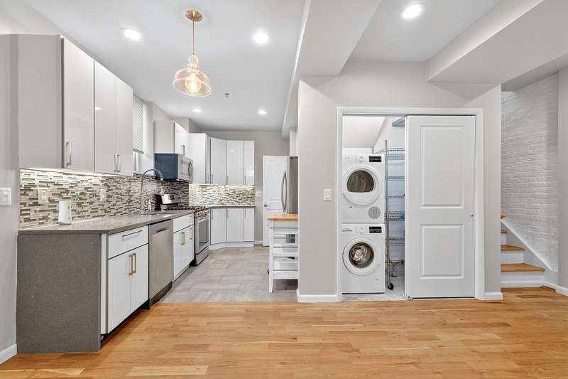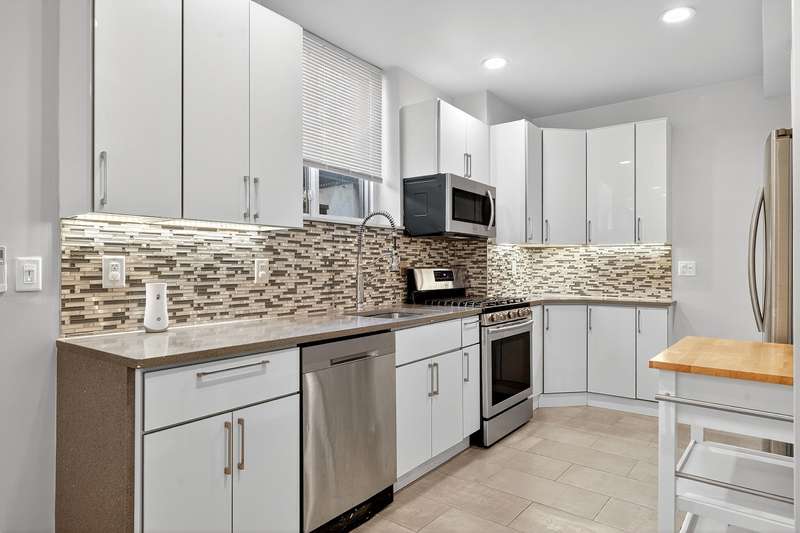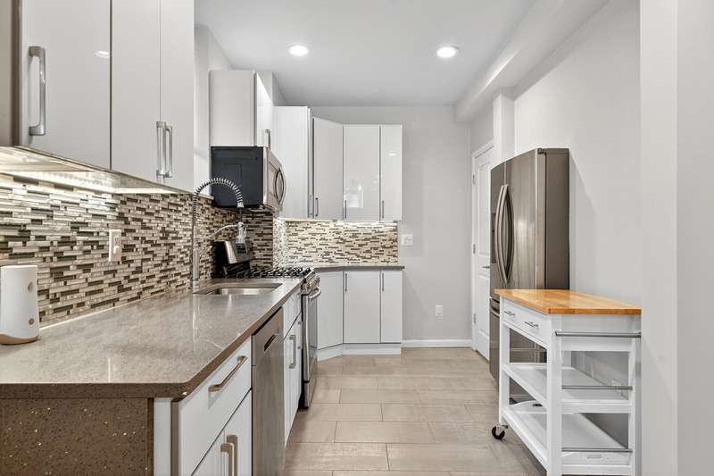 Beautifully maintained 3-bed 3-bath duplex condo conveniently located in the Marion section of Journal Square and 10 minutes to the Journal Square PATH train. Charming functional kitchen with quartz countertops, white soft-closing kitchen cabinets, grey mosaic tile backsplash, stainless steel appliances, recessed lighting and a pantry to hold all your groceries and other essentials. Three bedrooms and 2 of the 3 bathrooms are on the upper level with windows and an abundance of natural light. Remote-controlled mini split heating/cooling system, tankless water heater, intercom and your own private entrance at the side of the building in addition to the front main entrance way.