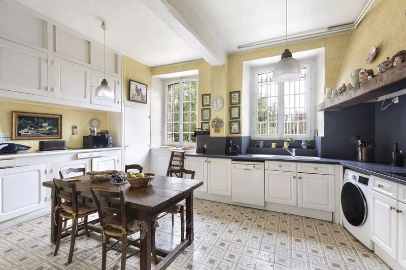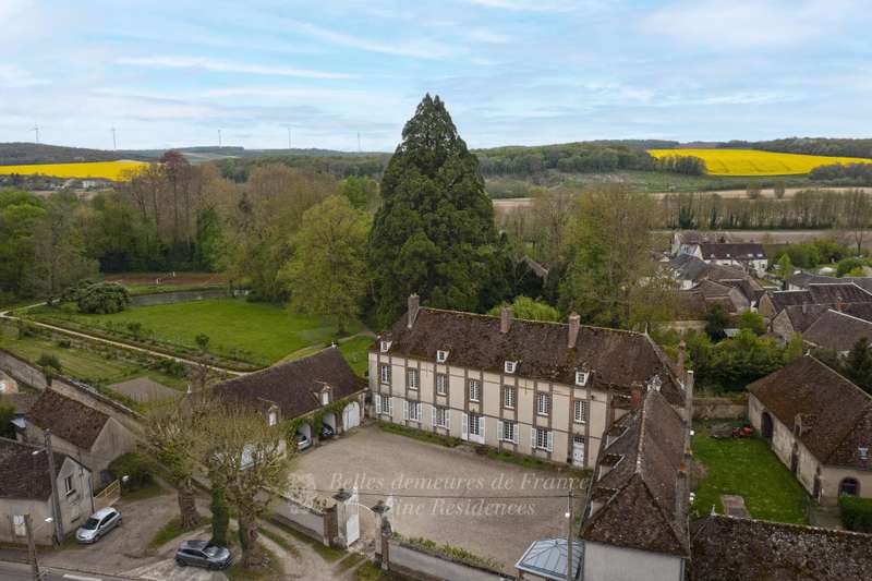 This majestic property set in 4 hectares of grounds surrounded by lovely countryside is on the edge of a village near Sens. Offering over 600 sqm of living space, the main house with 17th century origins comprises three wings set around a central courtyard. It includes a suite of spacious living and reception rooms, a drawing room, a study, and a generously proportioned kitchen with dining facilities and a pantry. Upstairs are eight bedrooms including five suites with bathrooms, a workshop with a balcony, and a delightful little artist’s studio. Crossed by river branches, the grounds feature a greenhouse, an orchard, a tennis court, a lake and spring, and a mooring on the banks of the river Vanne. The property also includes a caretaker’s lodge to renovate, and other annexes including barns. The property is very well-maintained, but would benefit from refurbishment. Complete file on request.