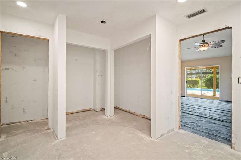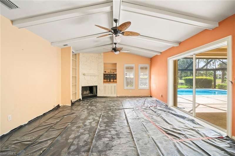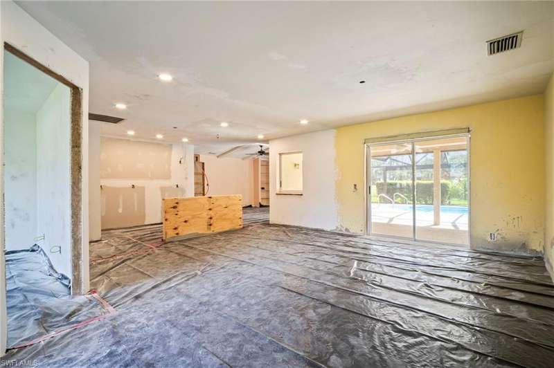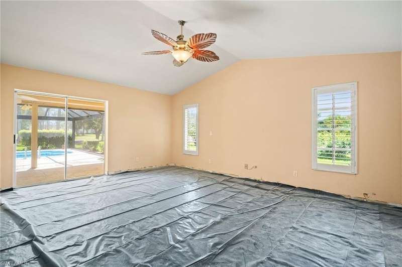 Discover the amazing opportunity of this spacious 3 bedroom, 2.5 bath home offering 2,120 square feet of living space in the heart of picturesque Lely Country Club. This property is ready to go for your high end finishes, providing the perfect blank canvas for you to bring a vision to life and create a custom home tailored to your style and needs. The home features a desirable split-bedroom floor plan, multiple living and dining areas, and abundant natural light throughout. Step outside to a generous screened lanai with picture-frame screening and a sparkling pool, all overlooking the manicured fairways of Royal Palm Golf Club. Whether you enjoy morning coffee with a view or entertaining poolside, the outdoor space offers a beautiful backdrop and endless potential. Located in a quiet, deed-restricted neighborhood with low HOA fees, residents enjoy the charm and peace of Lely Country Club while staying close to everything Naples has to offer. Optional golf membership at Royal Palm Golf