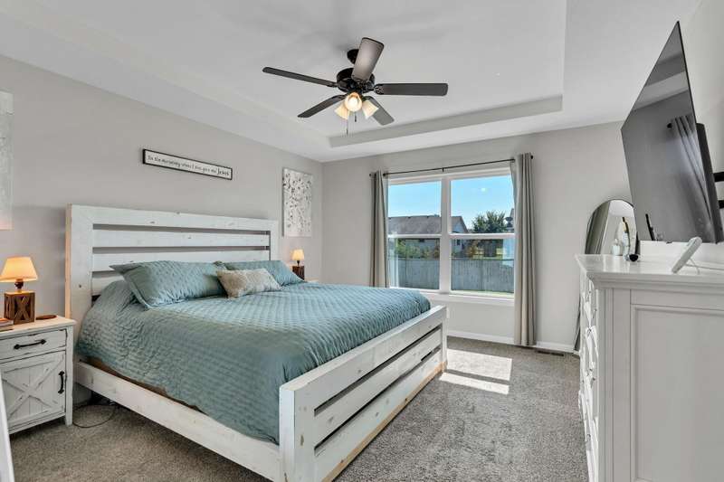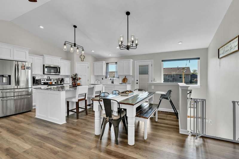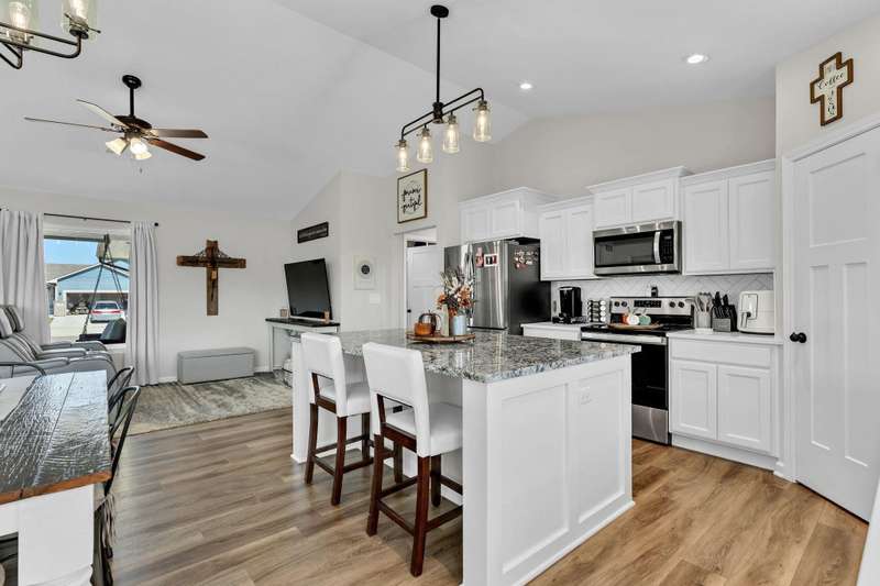 Welcome home to 291 W. Dusk! This beautiful one-owner home, built by Comfort Homes, offers like-new condition plus a 95% general property tax rebate until 2028! Step inside to discover a spacious ranch-style floor plan designed for easy entertaining. The open layout features vaulted ceilings, abundant natural light, and a perfect blend of style and comfort. The gorgeous kitchen showcases an oversized granite island with breakfast bar, quartz countertops, a stylish tile herringbone backsplash, walk-in pantry, and adjoining dining area with patio accessperfect for summer barbecues or evening gatherings. The primary suite provides a peaceful retreat with a tray ceiling, ceiling fan, and neutral dcor. The private bathroom includes quartz countertops, dual sinks, a linen cabinet, a walk-in shower, and a generous walk-in closet with built-in shelving. Downstairs, enjoy the partially finished basement featuring a large family room with recessed lighting and soft carpetingideal for movie nights or a play area. The lower level also offers potential for two additional bedrooms, a full bath, and ample storage space. Outside, relax on the patio overlooking the fenced backyard complete with sprinkler system and well. Everything in this home feels fresh, modern, and move-in readyjust waiting for you to make it your own!