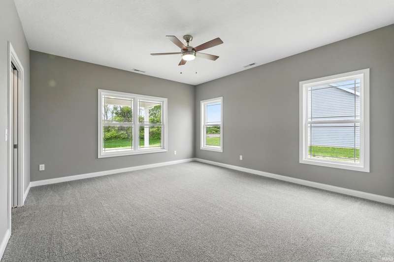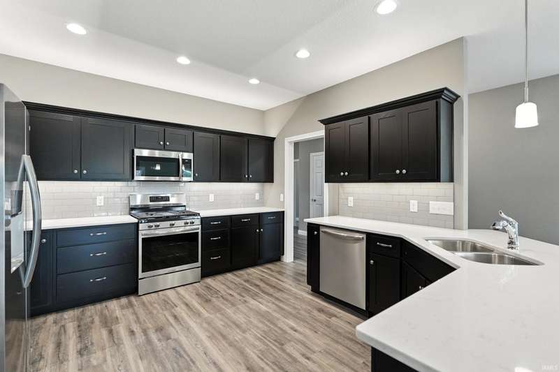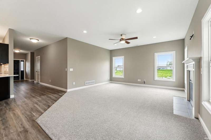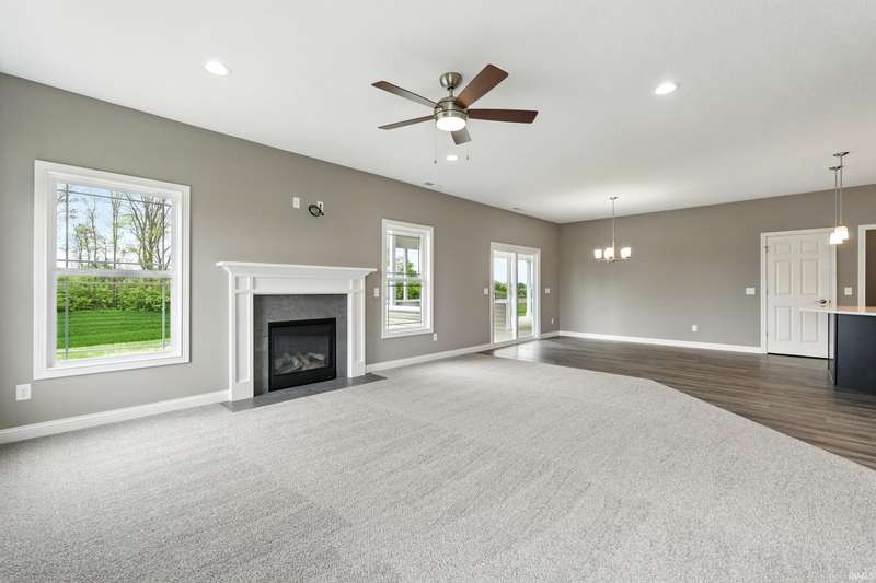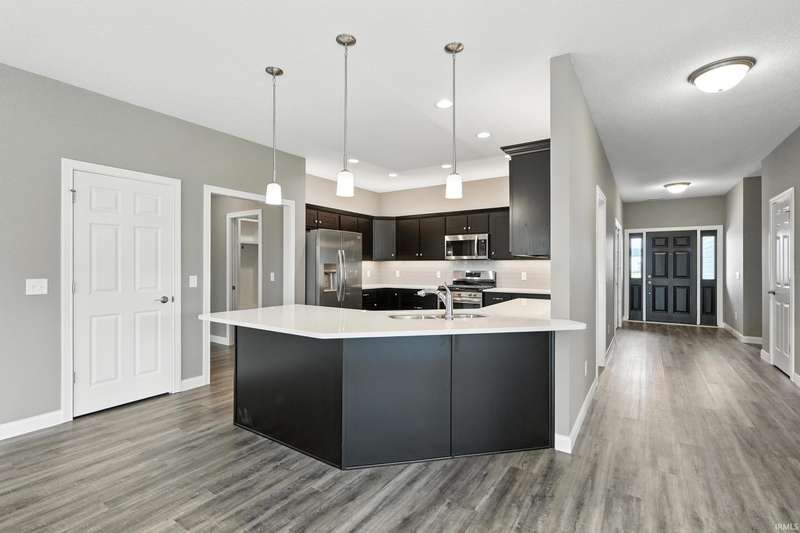 **SAVE UP TO $5,000 IN CLOSING COSTS!!** The MISSOURI built by MAJESTIC HOMES in Southwest Allen County Schools. This split bedroom ranch home on a cul-de-sac lot backs to a nice wind row of trees. Covered Front Porch walking into the foyer with LVP flooring that opens to the Office/Den with Glass french doors. Open Kitchen, Dining area and Great Room. A very large mud room/laundry rooms with lockers, a fantastic spacious primary bedroom and bath. Covered porch and patio area, 3-car garage. A few of the many features in this home are soft close doors and drawers, tile backsplash, over/under cabinet lighting, quartz counter tops with walk-in pantry.