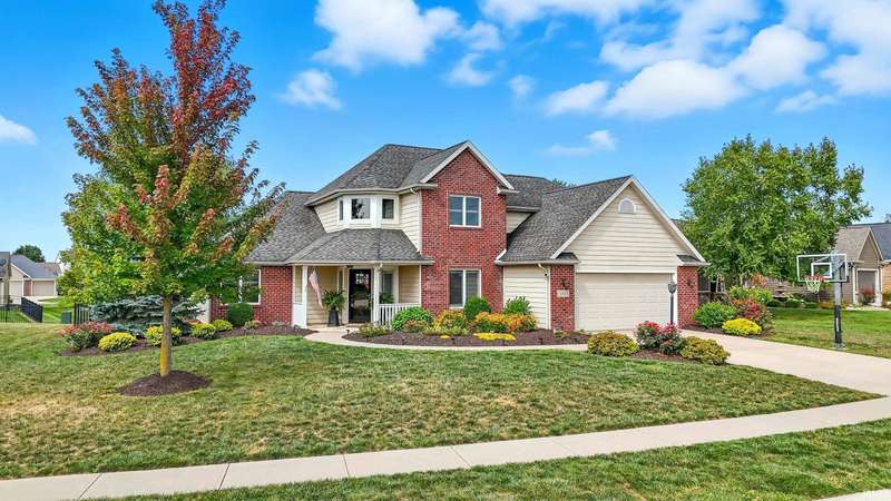 The MISSOURI built by MAJESTIC HOMES in Southwest Allen County Schools. This split bedroom ranch home on a cul-de-sac lot backs to a nice wind row of trees. Covered Front Porch walking into the foyer with LVP flooring that opens to the Office/Den with Glass french doors. Open Kitchen, Dining area and Great Room. A very large mud room/laundry rooms with lockers, a fantastic spacious primary bedroom and bath. Covered porch and patio area, 3-car garage. A few of the many features in this home are soft close doors and drawers, tile backsplash, over/under cabinet lighting, quartz counter tops with walk-in pantry.