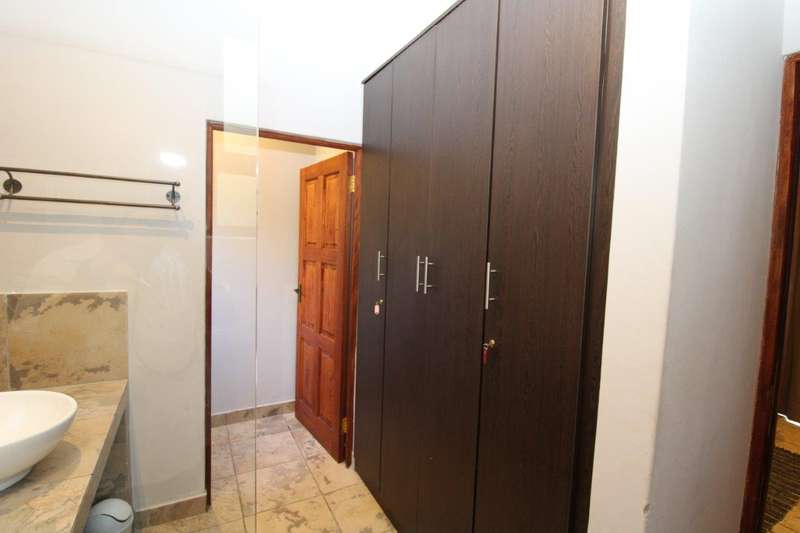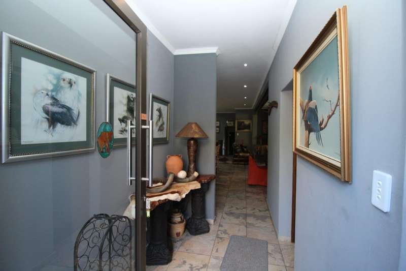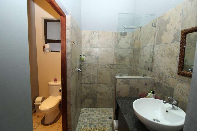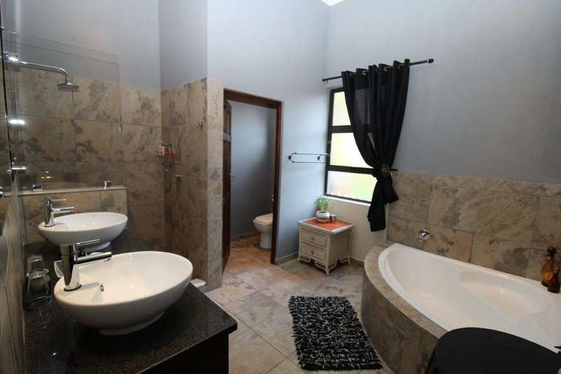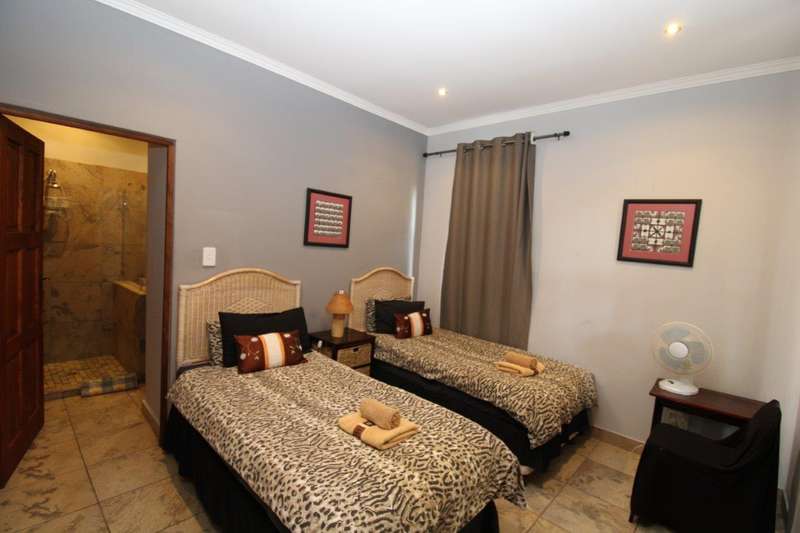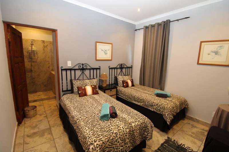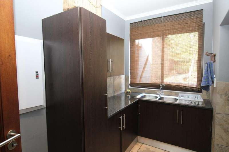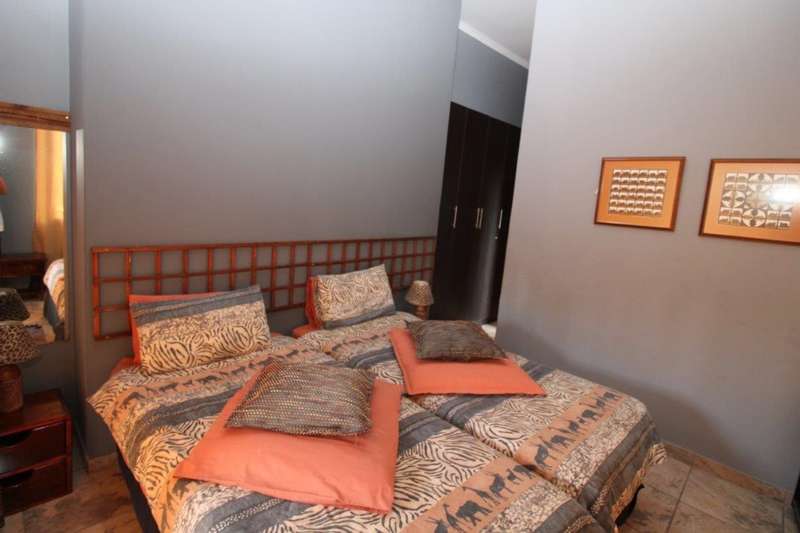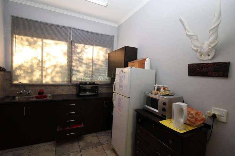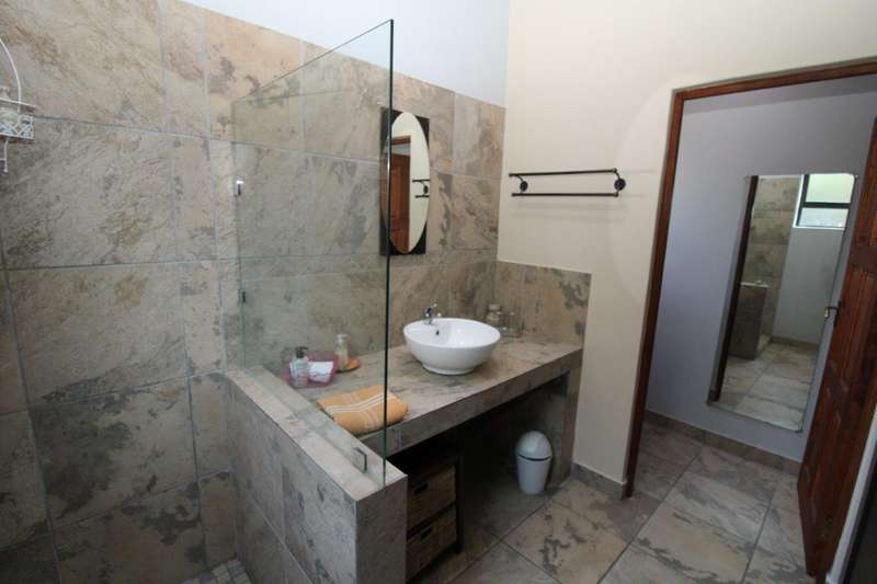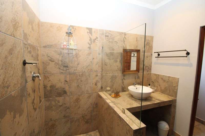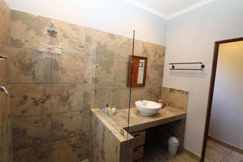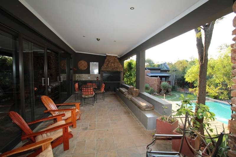 The private lodge consists of a big main house sleeping 6 to 8 people and two identical chalets, each with open plan kitchenette, dining area, lounge, and patio. Each chalet has two en-suite bedrooms. This lodge can house 14 to 16 people in total sharing. Rim flow swimming pool with safety net, sun deck and sun loungers. Boma braai area and patios – Making it ideal for a group of Directors or shared ownership consortium or large family getaway or retired pensioners. Main house: Three en-suite bedrooms, all with sliding doors that open to the garden and pool or some overlooking the natural bush. Main house has a guest toilet with glass door leading to pool area. Fully equipped open plan kitchen, big double door fridge freezer / Alba gas stove with gas oven, dishwasher, and microwave oven as well as all cutlery and crockery. The house has two lounges with a lovely built-in stone built fireplace for winter. Open plan kitchen is a scullery with dry yard equipped with a washing machine and lock-up pantry. The main house also has a private study or could serve as a fourth bedroom. The big sliding doors open onto a big patio with built-in braai on the Northern side overlooking the pool, and a beautiful rock koppie (Hill). On the Southern side another big patio with serving hatch for the boma braai area surrounded by big established indigenous trees. Next to the double undercover garages/carports is a play/ TV room equipped with TV decoder antenna and facility with aerial for Wi Fi and Internet. CHALETS: Two separate self-contained chalets, each with two en-suite bedrooms and open plan lounge with a fireplace and kitchenette (Fully equipped) privately situated, each with own patio and undercover built-in braais. (70m2 each). Caretaker or staff one bedroom flat with bathroom & kitchenette with its own private entrance. The property is to be sold “voetstoots” with all furniture, bedding, and content. Only personal family artefacts will be removed. The property is situated 6km on tar road from the main entrance on the R516 (manned 24/7 by Security) which makes it very safe and private. Tar roads all the way to the lodge with 2 track concrete road for the last 400 metres. EXCLUSIVE Secluded and private high quality Bushveld lodge. The buildings are mostly clad in natural rock and blend in with their surroundings. Full traversing rights of game reserve ideal for road and mountain bike cycling, walking and game drives. Property size: 50m x 50m. (Situated in and surrounded by Zwartkloof Private Game Reserve 2100ha). Game species include Buffalo, Leopard, Giraffe, Sable, Zebra, Nyala, Blue Wildebeest, Roan Antelope, Kudu, Bushbuck, Klipspringer, Impala and many other plains game species. Birding paradise. Buildings total size is 450M2. GREEN DESIGN: The house was built with the idea of being as “green” as possible with low maintenance. The main house and cottages have solar equipped geysers but with electric backup for rainy days. Gas stove installed plus 3 x 2500l rainwater tanks to collect rain water equipped with a pressure pump. The main Zwartkloof water supply for the dwellings is equipped with a water softener /purifier. As well as a generator for power outages. Beautiful low maintenance garden with daisy lawn- ever green (No lawnmowers) has well-established natural big trees, aloes, cycads, pelindaba rock and railway sleepers. Lots of interesting artefacts. Riverine area in front of property with small non Perennial River that flows in rainy seasons. Main Pool area fenced off to protect the lovely garden from wild animals. Zwartkloof Private Game Reserve Overview Zwartkloof Private Game Reserve is situated 13 km west of Bela-Bela (Warmbaths) on the R516 leading to Mabalingwe and only 90 minutes from Pretoria. The Zwartkloof Private Game Reserve Homeowners association side of the farm is 2031 ha in extent. The total farm including Zwartkloof Adventures is more the 3000 ha. This peaceful & authentic development is the ideal place to work from home or retire and live in harmony with nature. Tar roads to each stand sets this development apart from other private game reserves of similar size. All stands have spectacular views of the mountains and bushveld. The developer considered personal privacy, visual disturbance and minimum noise pollution as key priorities when positioning the stands. The size of the stands, 2500 square meters, have been deliberately chosen to limit the impact on the natural environment. To add to the quality of the development, all buildings conform to contemporary architectural guidelines. This, however, still allow for personal preferences regarding the design. Apart from a gatehouse with facilities for guards we also have a communal complex housing the administrative office, swimming pool, play area, picnic spots and tennis court. All the above will ensure a highly accessible, low-density, ecologically sensitive development of exceptional quality. Homeowners gain secure access through state of the art RFID and number plate recognition systems. Game species include blue wildebeest, zebra, buffalo, bushbuck, baboon, duiker, giraffe, mountain reedbuck, impala, klipspringer, kudu, leopard, nyala, roan antelope, sable antelope, steenbok, waterbuck, warthog, and leopard. Game drives available with Zwartkloof Adventures to view rhino, lion, tiger, leopard, wild dog, hyena, caracal, and other predators.