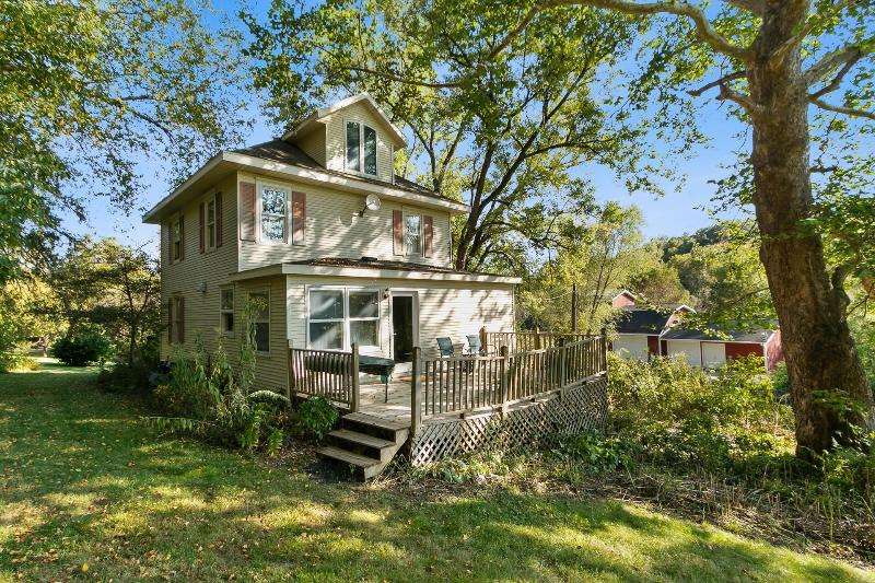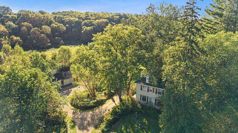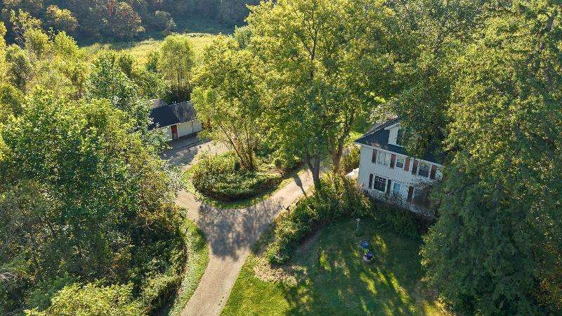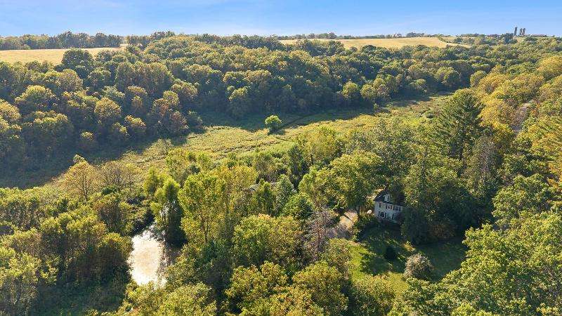 Once in a while, a truly rare offering comes along--this is one of those moments! Nestled on over 3 idyllic acres, this two-story charmer offers the ultimate country escape. Enjoy peaceful woods, a spring-fed pond, and a heated, powered 4-car detached shop--perfect for a workshop, artists studio, or home-based business. Remodeled by Woodtick & Co., this classic 4-square home blends timeless charm with thoughtful updates. Inside, you'll find gleaming hardwood floors, a beautifully renovated kitchen with granite & elegant custom cabinetry, a cozy library with built-in bookshelves & formal DR perfect for entertaining. The updated baths feature custom tile work, a stunning copper-accented shower, a relaxing soaker tub & main floor laundry. Upstairs holds the 3rd bdrm/loft. Serenity found!
