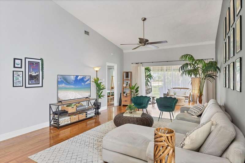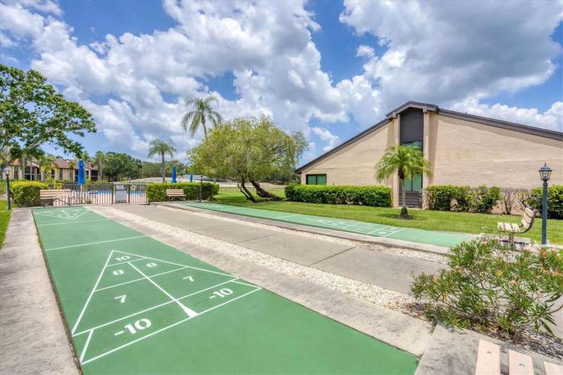 Welcome to this rarely available end-unit villa in the highly sought after maintenance-free community of Woodland Green. Located near University Town Center and the world-renowned Benderson Park - home to international rowing championships and training grounds for the U.S. rowing team. This spacious 2-bedroom, 2-bathroom home includes an over-sized one car garage, and also features a versatile den that can easily be converted into a third bedroom, a home office, or creative space. With a split floorplan, vaulted ceilings, and an open layout, the residence offers an airy, light-filled ambiance perfect for modern Florida living. The spacious kitchen is a chef's delight, complete with granite countertops, a large island, stainless steel appliances and a cozy breakfast nook. The primary suite features a gorgeous golf-course view and built-in shelving in the walk-in closet. The indoor laundry room adds to everyday ease. Step into the enclosed Florida room and take in expansive golf course views - your private vantage point to enjoy peaceful mornings or relaxing evenings. Other upgrades include a new roof, gutters and washing machine (2024), and a kitchen and bathroom remodel, ensuring peace of mind and modern efficiency. Residents enjoy access to a community pool, shuffleboard courts, and optional golf membership. Don't miss this opportunity to own a beautifully maintained, move-in-ready home in one of Sarasota's most desirable areas. Schedule your private showing today!