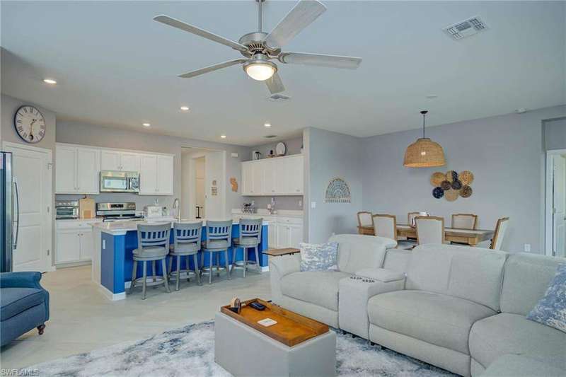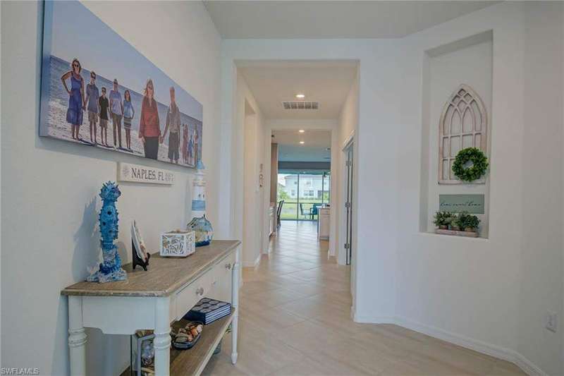 Like-New Marsala Model with Water Views in Orange Blossom Ranch! Welcome to 2438 Orchard Street in Naples, FL - a pristine Marsala model offering 3 spacious bedrooms, a versatile den, 3 full baths, and over 2,200 sq ft of thoughtfully designed living space - all set on a premium lot with tranquil water views. From the moment you step inside, this home impresses with like-new condition, sleek tile flooring throughout (no carpet!), and a flowing, open layout perfect for both everyday living and entertaining. The heart of the home boasts a chef's kitchen with extensive cabinet space, stainless steel appliances, granite countertops, and a large island ideal for gatherings and prep work alike. Whether you're cooking for two or hosting a full house, this space was designed to keep up. The split-bedroom layout provides privacy, while the den offers the perfect flex space - home office, guest room, or playroom. The primary suite features peaceful water views, a spacious walk-in closet, and an ensuite bath with dual sinks and walk-in shower. Step out to your covered lanai and soak in the serene lake views - a perfect spot for morning coffee or evening wine. The yard offers space to add a pool if desired, or simply enjoy the quiet, low-maintenance outdoor setting as-is. Located in the gated, resort-style Orange Blossom Ranch, this family-friendly community is loaded with amenities: Two resort-style pools, lap pool, hot tubs, tennis, basketball, volleyball & pickleball courts, a fitness center, clubhouse, playgrounds & more! Just outside the gates, enjoy the brand new Publix shopping center - golf cart accessible for the ultimate convenience! You're also minutes from top-rated schools and Big Corkscrew Island Regional Park - Collier County's largest and newest park, featuring sports fields, splash pads, walking trails, and more.