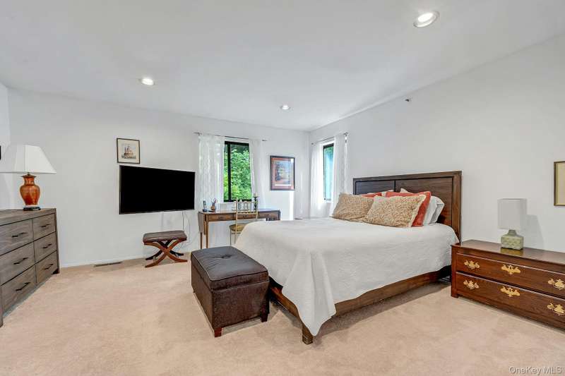 Welcome home to this updated end unit in the sought-after Stone Oaks community of Hartsdale. The main level features an open floorplan with lovely hardwood floors, & warm recessed lighting throughout. The spacious kitchen features stainless steel appliances, granite countertops, ample cabinetry and a stunning dining nook with floor-to-ceiling windows that fill the space with natural light. The living and dining area features a cozy wood-burning fireplace. There are sliding glass doors leading to a private deck,-perfect for relaxing or entertaining outdoors. The first floor also includes a versatile office/den, windowed half bathroom, a laundry area with direct access to an spacious attached two car garage. Upstairs you'll find two generous bedrooms. The primary suite offers a walk in closet and a separate vanity/dressing area, primary bathroom with double vanity while the second bedroom is bright and spacious with abundant closet space and it's own en-suite bathroom. Stone Oaks is a p