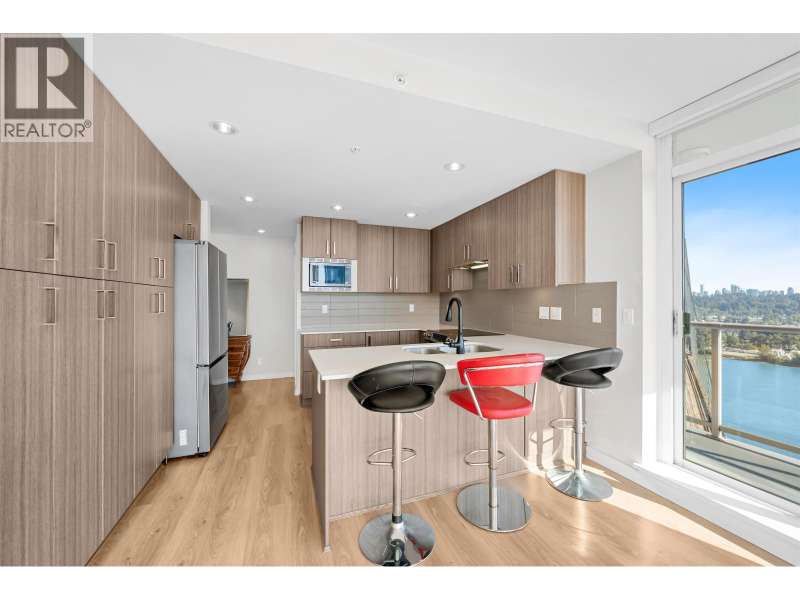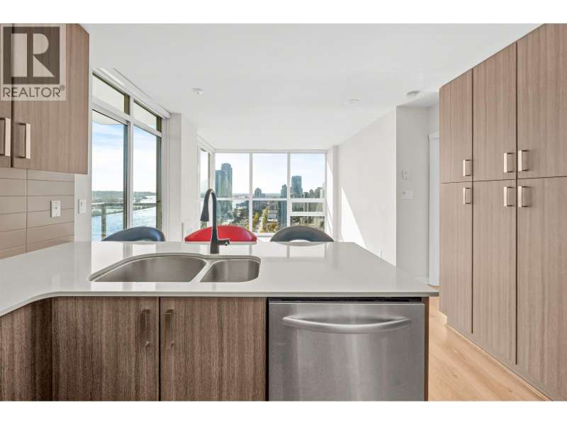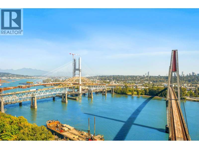 STUNNING PANORAMIC VIEWS from every room! Southwest 2 Bed, 2 Bath, Corner unit at Northbank with a spacious balcony & unobstructed views of the Fraser River and Downtown New West. Modern deisgn, Kitchen features quartz countertops, contemporary soft-close cabinets, plenty of storage/pantry space, stainless steel appliances (new fridge & microwave). Located next to Albert Crescent Park and just steps to Pier Park/waterfront, and skytrain. Convenient access to shops and restaurants in downtown New West. Storage locker can be rented from the strata for $10 a month. 1 Parking included. (id:58403)