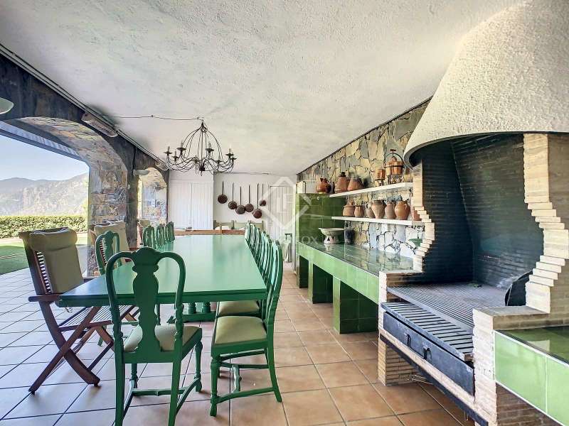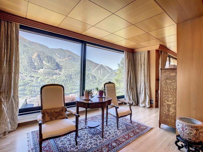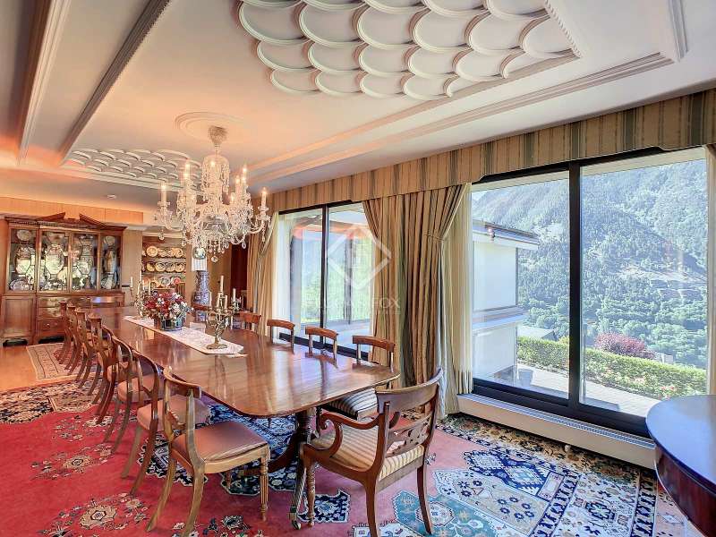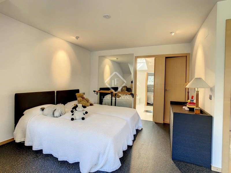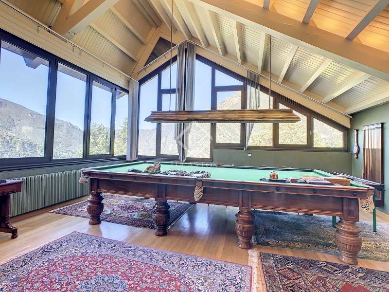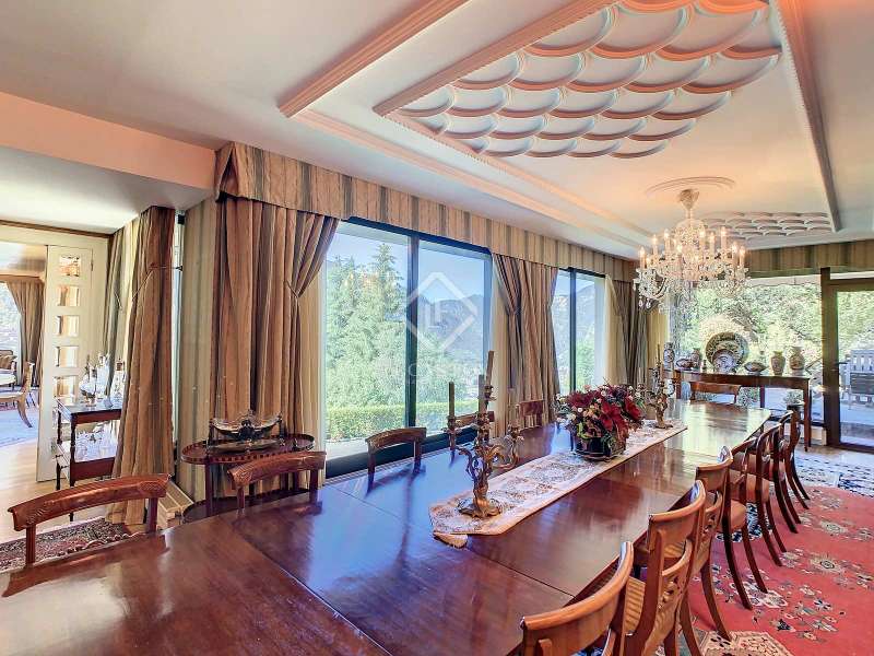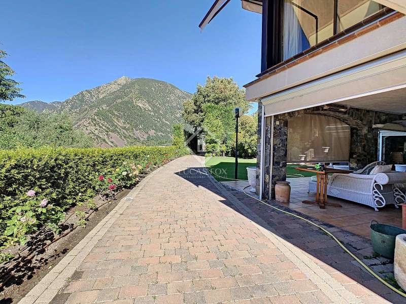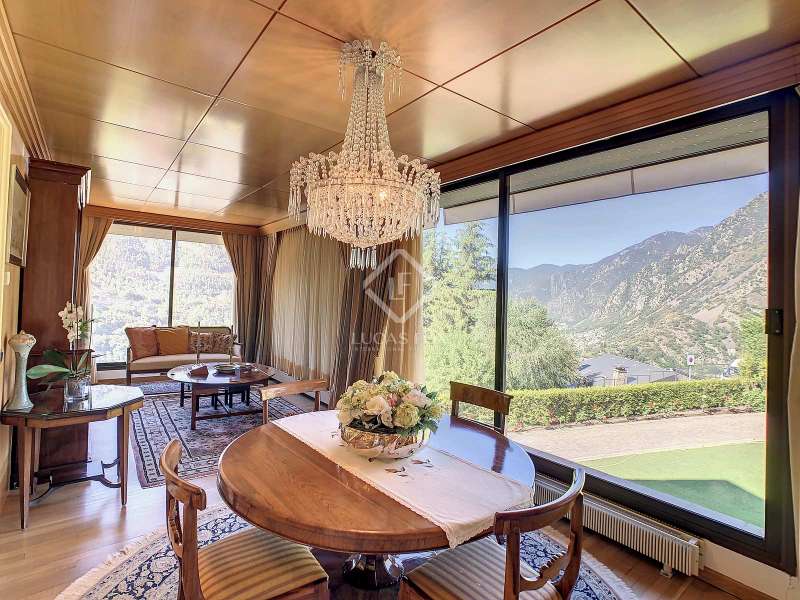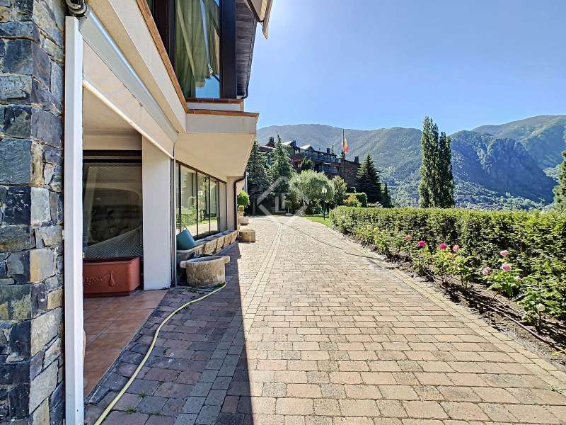 This magnificent modern house is located in the most sought after area of Andorra and has an ideal location to enjoy peace and tranquility, with incredible living spaces and wonderful views of the entire capital, as well as the Madriu Valley. All this, without giving up easy access to the centre. The house sits on a large plot with beautiful gardens and is surrounded by greenery, giving it a lush yet private atmosphere. The living rooms have floor-to-ceiling windows and sliding doors that merge the interior space with the exterior. While the terraces on the main floor and in the upper part of the house take advantage of its incredible location to enjoy the panoramic views of the Madriu Valley. All the rooms in the house are spacious, luxurious and with high quality finishes. The house has a lift, hot/cold air conditioning, garage and driveway with security doors, as well as rooms for staff and guests. We enter the property on the ground floor that has a large hall with fitted wardrobes, which leads to the bedroom area of the house. The master bedroom has an en-suite bathroom with an Italian shower, as well as a shoe rack, an impressive dressing room and private access to the terrace with spectacular views. The bedrooms that complete this floor also have a private bathroom, one with a bathtub and the other with an Italian shower, and fitted wardrobes. The second floor houses a spacious living room with a designer fireplace. This floor also offers spacious and bright suites, with a private bathroom, one with an Italian shower and the other with a bathtub, both with access to the terrace with fantastic views. The main floor offers a spectacular living room with floor-to-ceiling windows that flood the house with natural light, give access to the magnificent garden that surrounds the entire floor and offer beautiful views of the entire valley. To the side, next to the living room, we have a dining area, a bar area and a guest toilet. The floor is completed with the luxurious fully equipped kitchen, with high quality appliances and a central island, as well as the breakfast area. The lower ground floor presents a large multipurpose room with a lot of personality. Currently, it is used as an event room with an indoor barbecue, dining area and lounge, as well as a kitchen exclusively for events. Next, we have a spacious cellar with a central table for tastings and a storage area. This home is designed to make the most of the outdoors, with access to the garden from the spa and function room, with plenty of space to relax and dine alfresco. To complete this floor, we find a huge laundry room and an area for service staff. This elegant family home enjoys spectacular views of Andorra and a modern and cosy interior decoration, as well as the best quality finishes throughout the house. An excellent opportunity for lovers of tranquility and nature. Contact us for more information or to arrange a visit.