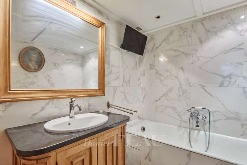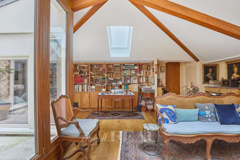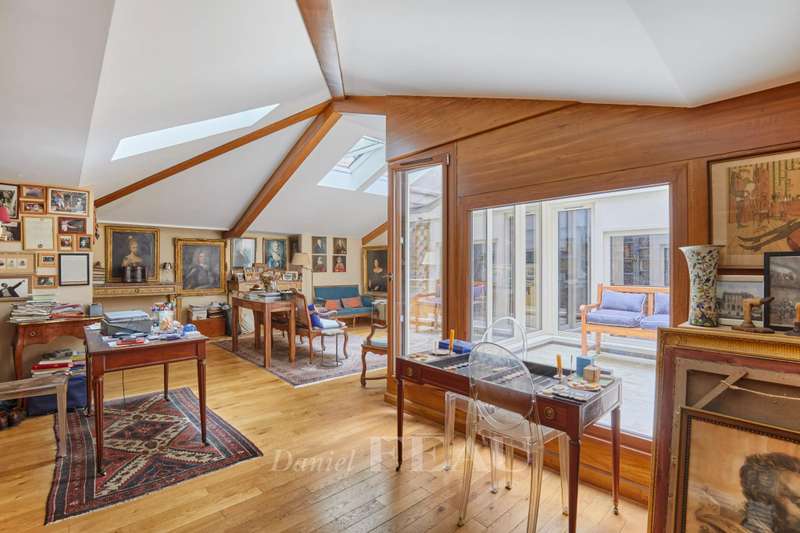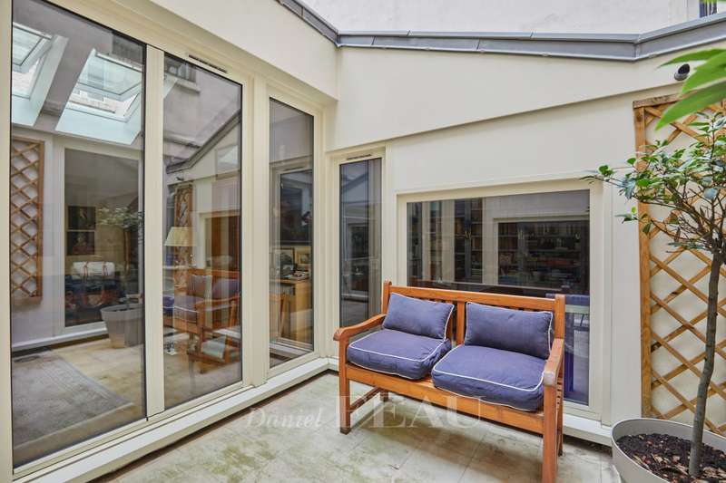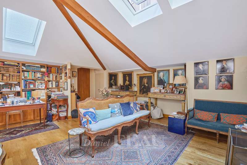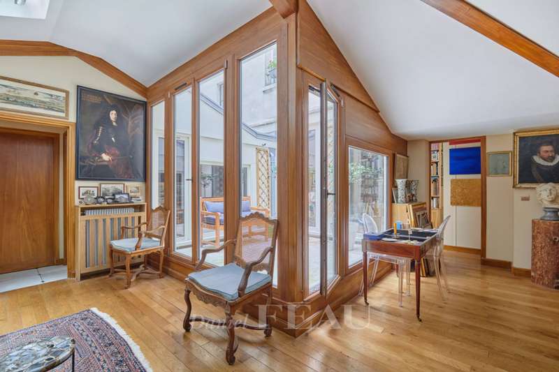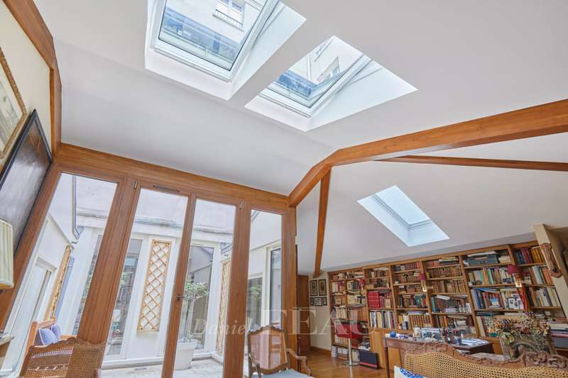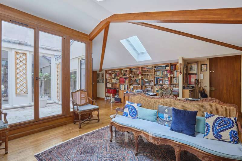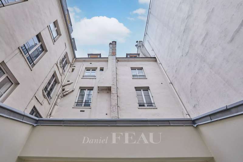 Quai des Grands Augustins. This atypical apartment of 74 sqm benefiting from a 9 sqm patio is on the 1st floor of a fine turn-of-the-century building with a lift. Overlooking a peaceful courtyard, it includes a living/reception room with a dining room, an equipped kitchen, two bedrooms and a bathroom. With a cellar. There are no neighbours above the living room, dining room and bedroom. Voted and paid for in the co-ownership: creation of several skylights inside the appartment which will add light as well as repair of the entrance porch and the street side facade.