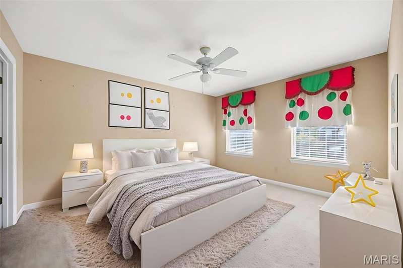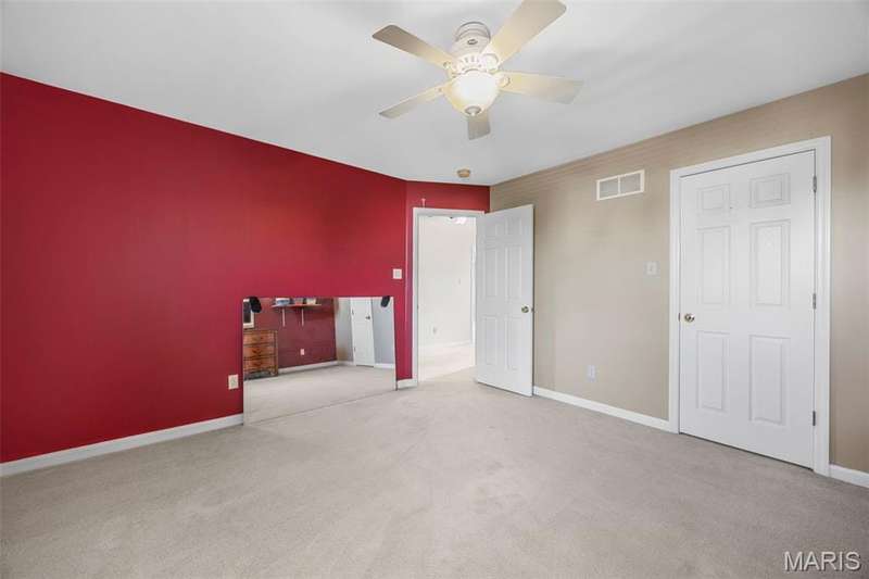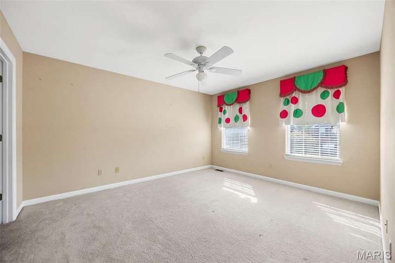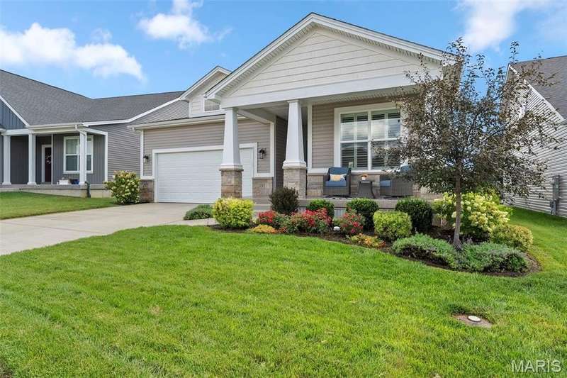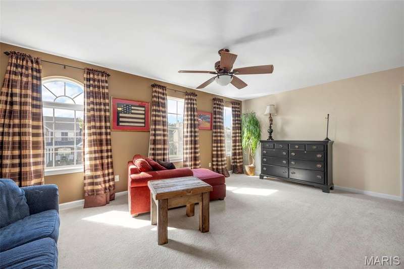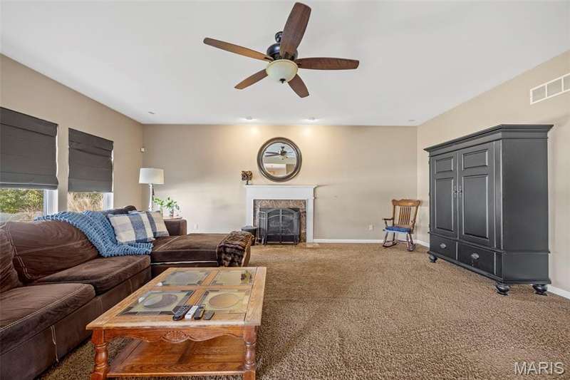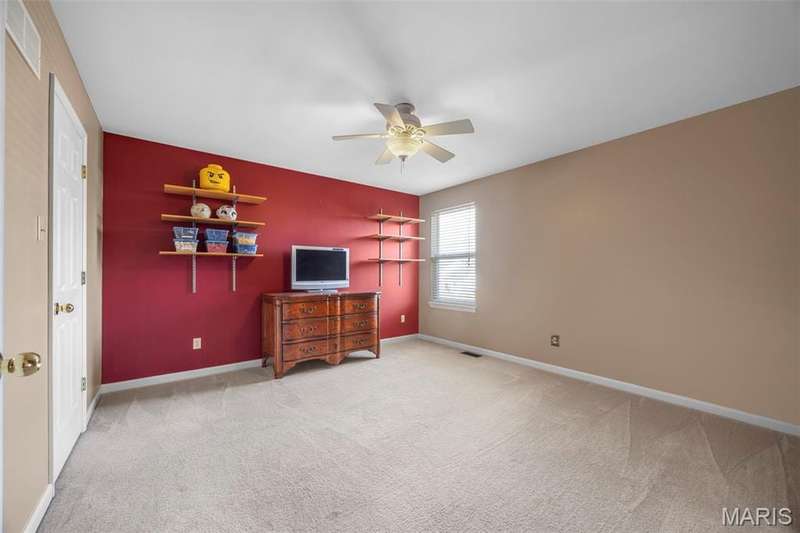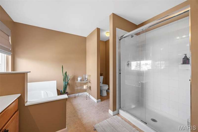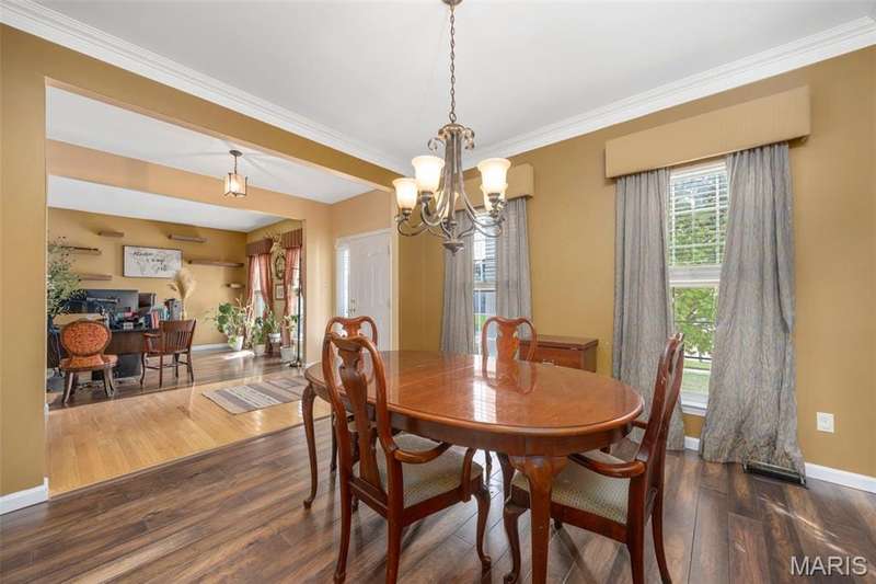 Beautiful 2-story home with over 3,000 sq ft of living space on nearly a -acre lot, tucked at the end of a quiet cul-de-sac in the highly rated Wentzville School District. The fenced backyard with crisp white vinyl fencing offers privacy and plenty of room to relax or entertain. Inside, a welcoming wood foyer opens to a formal dining room and a flexible living room or home office. The open-concept great room features a cozy wood-burning fireplace and flows into the kitchen and breakfast area. The kitchen includes 42 maple cabinets, a farmhouse sink, butterfly island, laminate counters, and a walk-in pantry. Main-level laundry offers built-in cubbies, cabinets, and newer flooring. The insulated and drywalled 3-car garage provides ample storage. Upstairs, a loft area separates the spacious primary suite from three additional bedrooms. The primary retreat features a sitting area, dual sinks, soaking tub, separate shower, and walk-in closet with built-ins. The full basement includes a bath rough-in and egress window for easy future finishing.