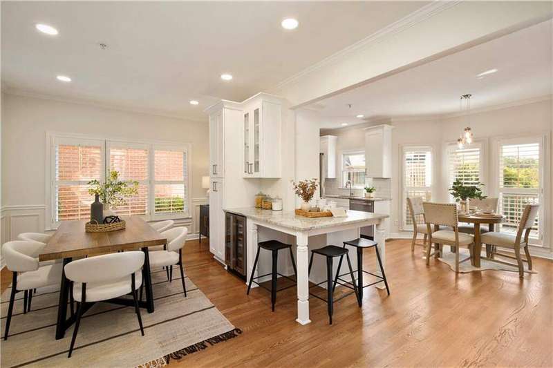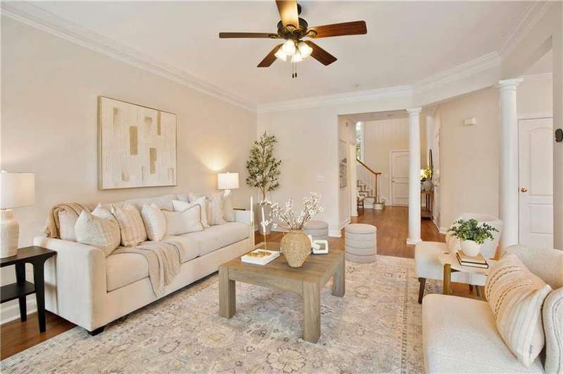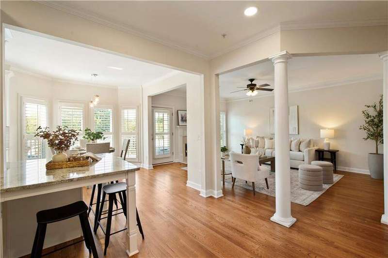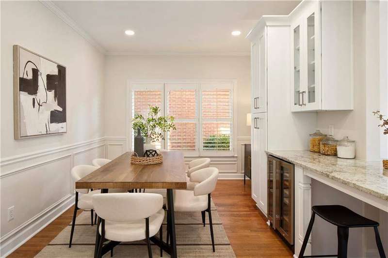 Tucked away on a quiet cul-de-sac just minutes from the vibrant Marietta Square, this picture-perfect home blends timeless charm with modern sophistication. From the moment you arrive, you'll be captivated by the home's curb appeal, complete with a mature landscaping, and a welcoming front porch. Inside, natural light pours through plantation shutters and large windows, highlighting the home's airy, neutral palette and hardwood floors. The open-concept main level offers ideal flow for both everyday living and entertaining. A cozy living room centers around a gas fireplace and opens directly onto a spacious deck-perfect for enjoying morning coffee or evening cocktails with a view of the private, fenced backyard below. The beautifully updated kitchen is a standout feature, designed with clean white cabinetry, granite countertops, a sleek tile backsplash, and stainless-steel appliances. A sunny breakfast nook with wraparound windows provides a cheerful space for casual meals, while the adjacent formal dining room is enhanced by elegant wainscoting and a custom butler's pantry and wine bar, ideal for hosting with style. Upstairs, you'll find a serene and spacious primary suite with tray ceilings, plenty of natural light, and room to unwind. The en-suite bathroom features a soaking tub, dual vanities, and a walk-in shower. Two additional bedrooms are well-sized and share a convenient Jack and Jill bath. The bright, daylight basement is a rare bonus, complete with stylish tile floors, gorgeous, coffered ceilings, a half bath, and flexible living space perfect for a media room, game room, or home office. There's also an unfinished storage area with endless possibilities. Step out from the basement to a lush backyard retreat-fully fenced, landscaped with care, and featuring a charming brick walkway that loops around to the front of the home. Located just moments from Wellstar Kennestone Hospital, charming local shops, award-winning restaurants, and weekend farmers markets at Marietta Square, this home offers both convenience and community. This location truly has it all, with convenient access to the M2R Trail and Lewis Dog Park, perfect for your furry friends, easy highway access, and the benefit of top-tier amenities right at your fingertips.