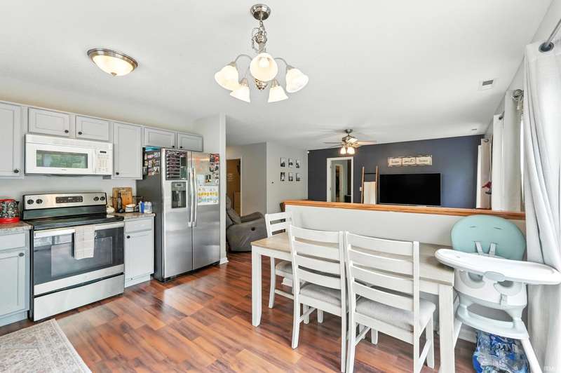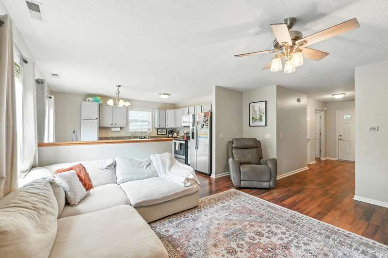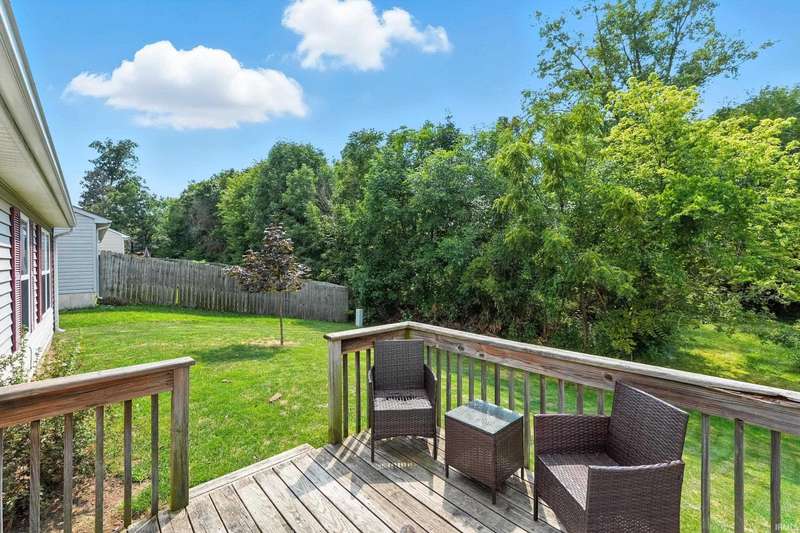 Welcome to Hidden Pointe! This well designed 3-bed, 2-bath ranch offers an inviting open-concept layout and is move in ready! The bright kitchen and living room are nice and open, great for entertaining guests or keeping an eye on the kids while preparing a meal. The split-bedroom floorplan provides privacy, while the spacious primary suite offers an ensuite and large walk-in closet. Step outside to a wood deck overlooking a private backyard—perfect for morning coffee or evening relaxation. This home blends modern comfort with low-maintenance living in a desirable neighborhood close to shopping, dining, and schools.