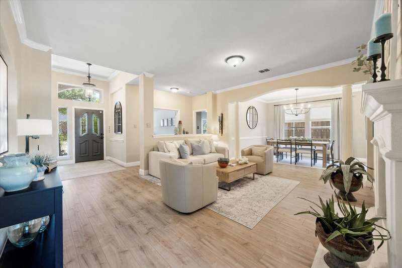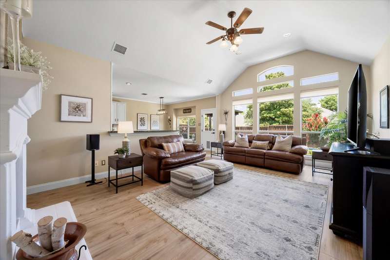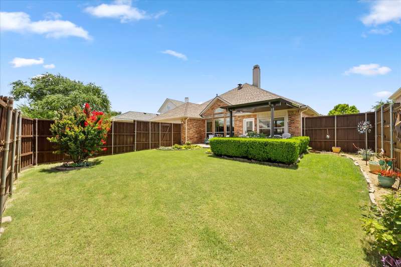 NEW PRICE & GREAT OPPORTUNITY!!!! This home offers so many great features and is now even more enticing. Come see why it is the perfect fit! Schedule your showing today!!! Welcome to this beautifully maintained one-story home nestled in the highly sought-after Ridgeview Ranch community and zoned to award-winning Frisco ISD! Just down the street from acclaimed Anderson Elementary and a short stroll to community amenities, this home offers both comfort and convenience. Inside, youll find 4 spacious bedrooms, 3 full baths, and an additional versatile flex space perfect for an office, craft room, or playroom. The open floor plan invites you in with a calm, welcoming atmosphere, highlighted by a wall of windows in the family room that showcase the lush, colorful backyard and covered patio, ideal for relaxing or entertaining. Two inviting living areas share a charming double-sided fireplace, creating a cozy focal point for everyday living. Thoughtful updates throughout include plantation shutters, updated drop-down window shades in the main living areas, new flooring, multiple replaced windows, new gutters, and a new roof (2023). Ridgeview Ranch residents enjoy exceptional community amenities: two sparkling pools, tennis courts, playgrounds, picnic areas, a fitness center, and a clubhouse all just steps away. Plus, the Ridgeview Ranch Golf Club, featuring an 18-hole public golf course in walking distance. This home is perfectly located in the Frisco-Plano-Allen corridor and within minutes to a multitude of shopping and dining in the Stonebriar area and Frisco ISD! Conveniently located between Custer Rd. and Independence Pkwy, with easy access to McDermott and the Sam Rayburn Tollway, this home truly has it all location, lifestyle, and livability. A must see!!!!