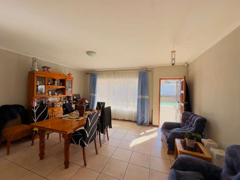 Welcome to this spacious and well-appointed 3-bedroom, 2-bathroom home, perfect for modern family living - Nestled in a quiet, sought-after neighborhood, this property offers a blend of comfort, style, and functionality. Step inside to find 2 generous lounge areas ideal for both relaxation and entertaining. The separate dining area seamlessly connects to the heart of the home — a well-equipped kitchen featuring an eye-level oven, a hob, and ample cupboard space. The main bedroom boasts an en-suite bathroom (MES), while the remaining bedrooms are well-sized with easy access to the second bathroom. Outdoor living is a breeze with a covered patio overlooking a sparkling swimming pool — perfect for those warm summer days. The double garage offers secure parking and additional storage space. This home is a must-see for families seeking space, convenience, and lifestyle. Schedule your viewing today!