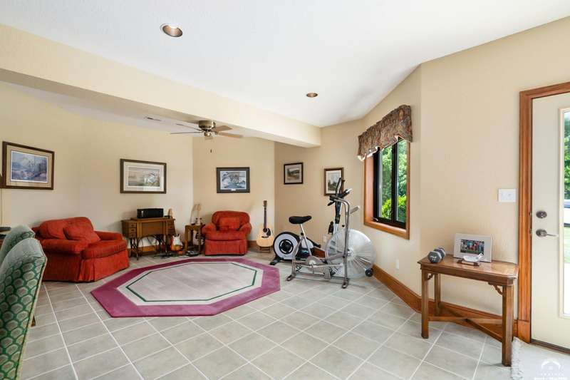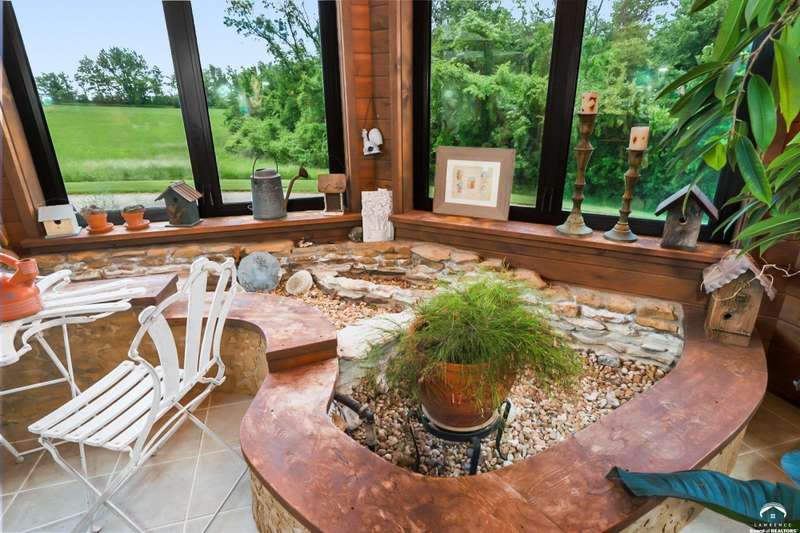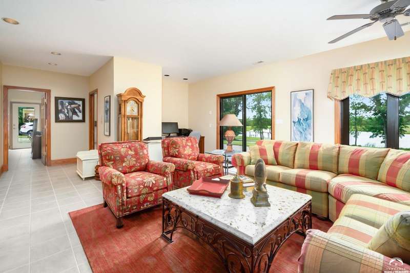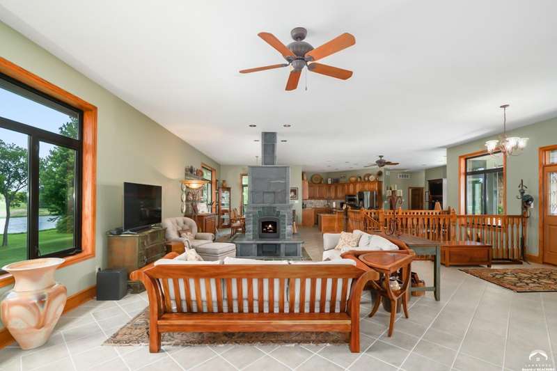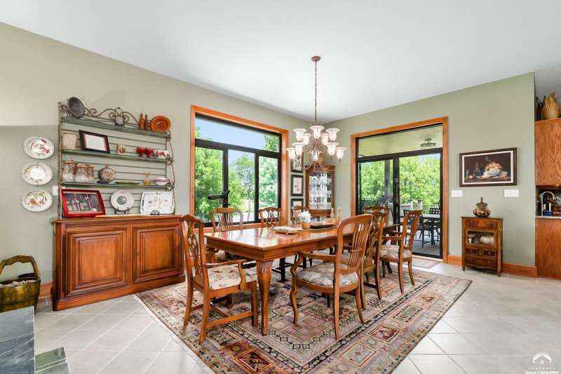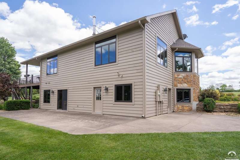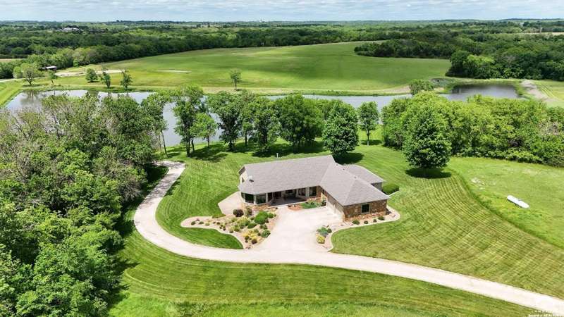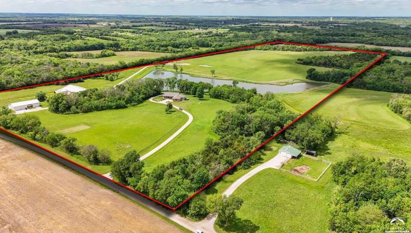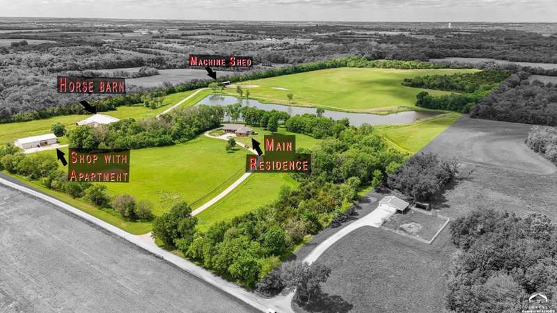 Looking for a peaceful rural setting just minutes from the amenities of town? This Dream Homestead includes 80+/- Acres with Custom Home, Pond, Shop & Equestrian Facilities! And it's just a few miles south of Baldwin City. Experience the ultimate rural retreat featuring a meticulously maintained, custom ranch home with walk-out basement, 7-acre stocked pond, 4800SF workshop with apartment, and equestrian amenities. Designed for comfort, self-sufficiency, and recreation, this property offers panoramic views, a pondside deck, garden plot, and private road access. Enjoy fishing, floating, or relaxing at the covered dock, or explore trails perfect for hiking, riding, and wildlife watching or hunting. The workshop is a dream setup for hobbyists and professionals alike and can accommodate guests in the 800SF apartment. The indoor arena, stables, tack room, and pastures make it a dream for horse lovers. Whether you're homesteading, hosting guests, or seeking peace and tranquility, this one-of-a-kind property is not just a home, it's a lifestyle. Be sure to check out the video to imagine yourself living the good life!