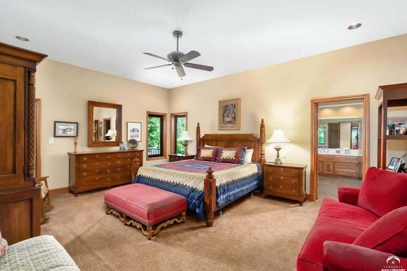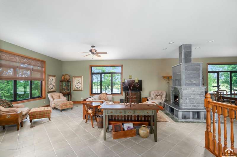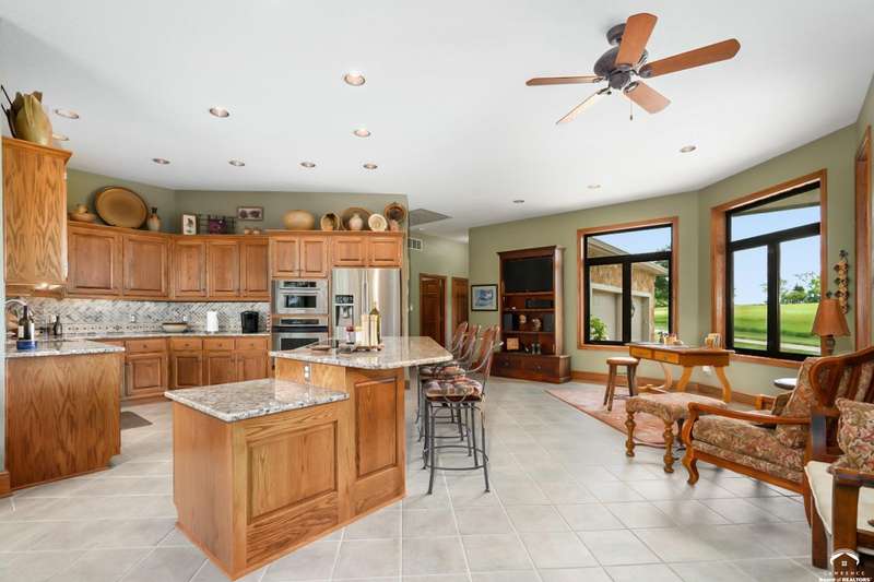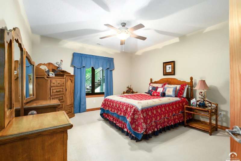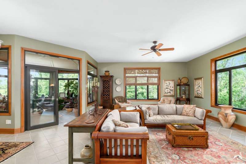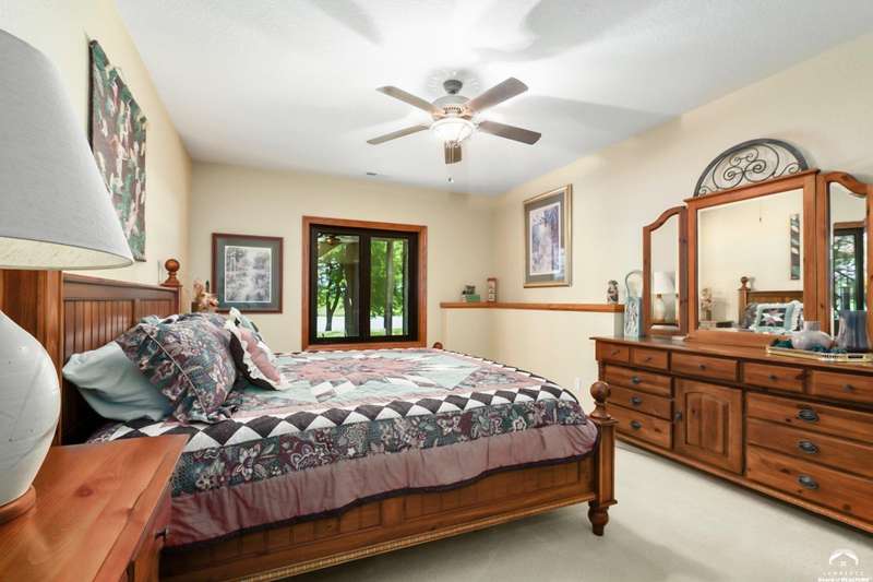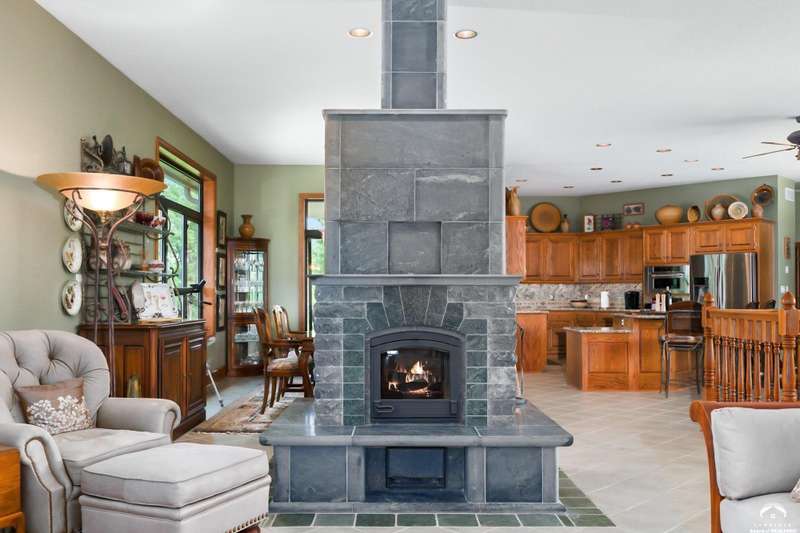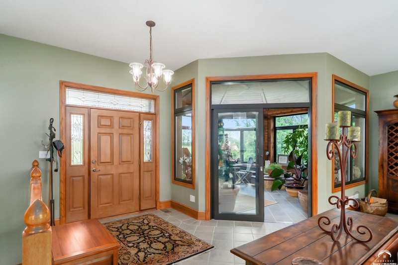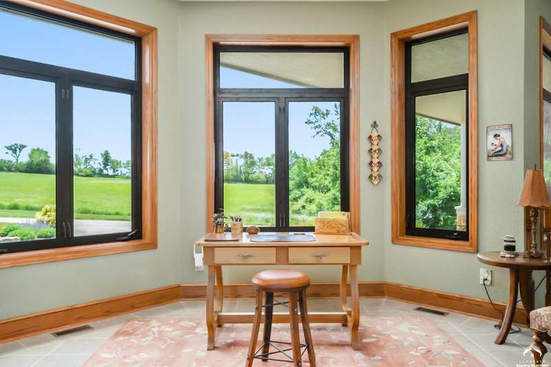 Looking for a peaceful rural setting just minutes from the amenities of town? This Dream Homestead includes 80+/- Acres with Custom Home, Pond, Shop & Equestrian Facilities! And it's just a few miles south of Baldwin City. Experience the ultimate rural retreat featuring a meticulously maintained, custom ranch home with walk-out basement, 7-acre stocked pond, 4800SF workshop with apartment, and equestrian amenities. Designed for comfort, self-sufficiency, and recreation, this property offers panoramic views, a pondside deck, garden plot, and private road access. Enjoy fishing, floating, or relaxing at the covered dock, or explore trails perfect for hiking, riding, and wildlife watching or hunting. The workshop is a dream setup for hobbyists and professionals alike and can accommodate guests in the 800SF apartment. The indoor arena, stables, tack room, and pastures make it a dream for horse lovers. Whether you're homesteading, hosting guests, or seeking peace and tranquility, this one-of-a-kind property is not just a home, it's a lifestyle. Be sure to check out the video to imagine yourself living the good life!