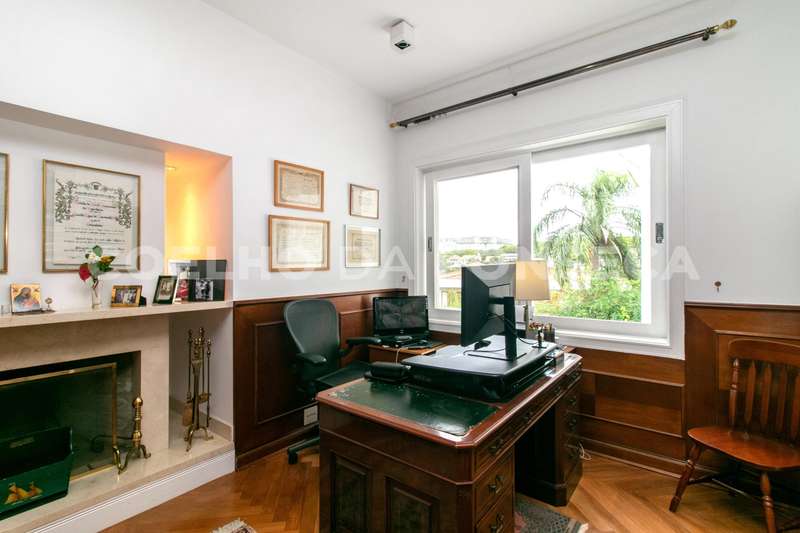 Casa construída em 2020, totalmente nova. Living amplo com lareira e, no mesmo nível, a piscina e um agradável jardim. Sala de jantar com vista para o jardim. Toda em mármore travertino, com excelente acabamento. Suítes amplas, sendo a master com closet. Escritório confortável. Cozinha com acesso ao family room e ao jardim interno. Ótima lavanderia, canil e dependência de funcionários. No subsolo, sauna seca, academia e 6 vagas para veículos. Na entrada, guarita blindada. Ótima localização com fácil acesso às principais vias do bairro.