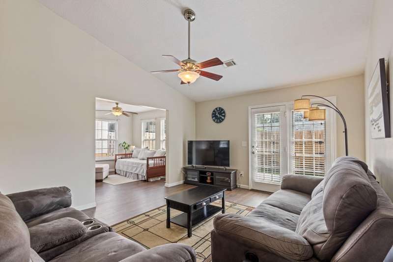 Welcome to this beautifully maintained one-level end-unit townhome in the desirable Bentley Place, a community known for its convenience and easy, low-maintenance lifestyle. Step inside to an open-concept floor plan filled with natural light. The living and dining areas feature durable, water-resistant wood-look flooring, while the spacious kitchen comes fully equipped with appliances and generous cabinet storage. A bright sunroom with its own closet provides the perfect flex space and could easily serve as a third bedroom, home office, hobby room, or playroom. The primary suite creates a private retreat with a walk-in closet and en-suite bath, while an additional bedroom and full bathroom provide comfort for family or guests. Everyday functionality is enhanced by a single-car garage with storage, a dedicated laundry room, and an additional parking pad. Outdoors, relax on the covered patio and enjoy a backyard featuring 25-year, high-traffic-rated turf for year-round beauty and easy upkeep. The community takes care of the details with HOA dues covering maintenance of the common areas and front lawns, including mowing, edging, blowing, shrub trimming, and fresh pine straw twice a year. Best of all, this home is conveniently located just a short distance from downtown North Augusta, the medical district, I-20, I-520, Fort Gordon, Clarks Hill Lake, shopping, and dining—giving you quick access to both work and play. Do not miss your chance to enjoy move-in-ready living in the highly sought-after Bentley Place community. Schedule your private showing today! Private Remarks: Please verify schools and dimensions if important. Thanks for showing!