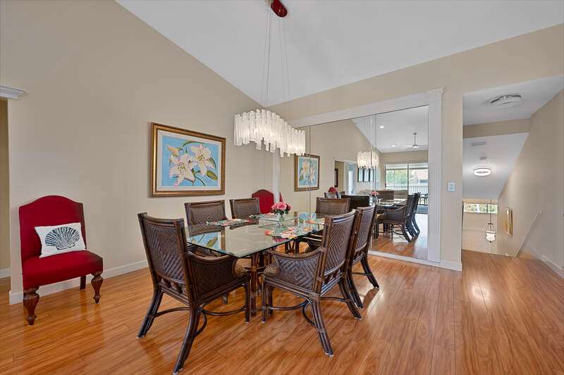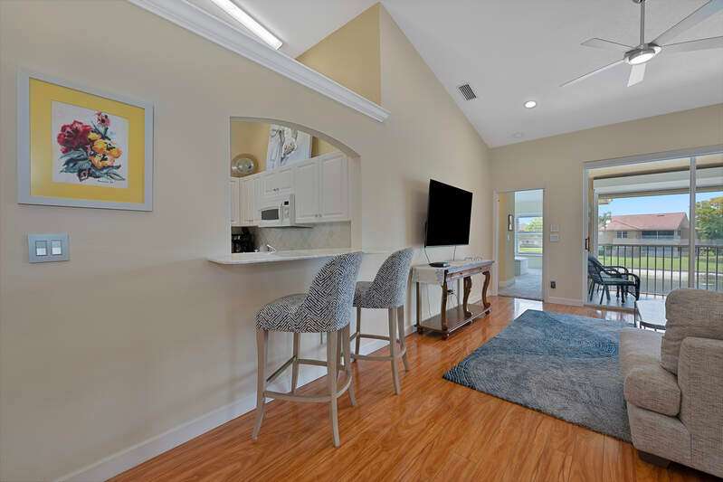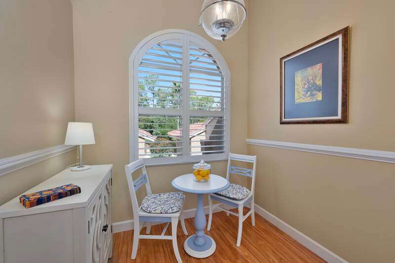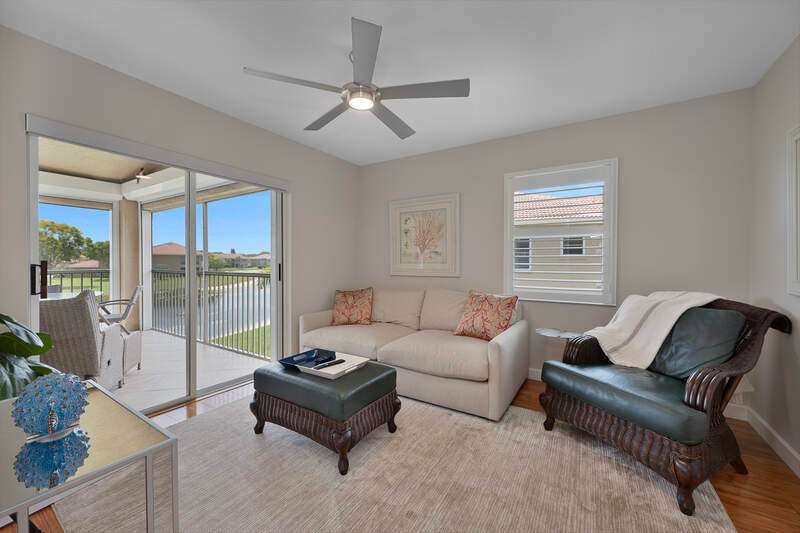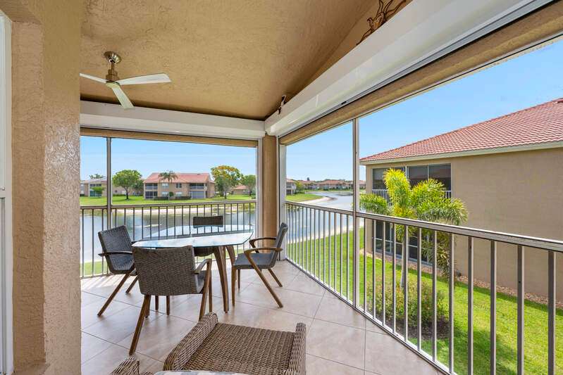Gorgeous lake view in the heart of North Naples! This 2 bed plus den, 2 bath garage coach home in Huntington Lakes is being sold TURNKEY FURNISHED with upgraded furniture, textiles and artwork! The property boasts a spacious open-concept floorplan with plenty of space for visitors! The den has its own access to the expansive screened-in balcony overlooking the lake. Vaulted ceilings, oversized bedrooms, eat-in kitchen plus formal dining space have this coach home living like a single-family property. Huntington Lakes is located just 10 minutes from the Gulf Beaches, 20 minutes to RSW, 20 minutes to Downtown Naples and less than 5 minutes to Seed to Table! The community has tennis, clubhouse, pool and more!