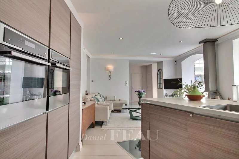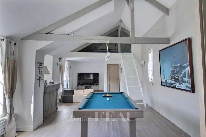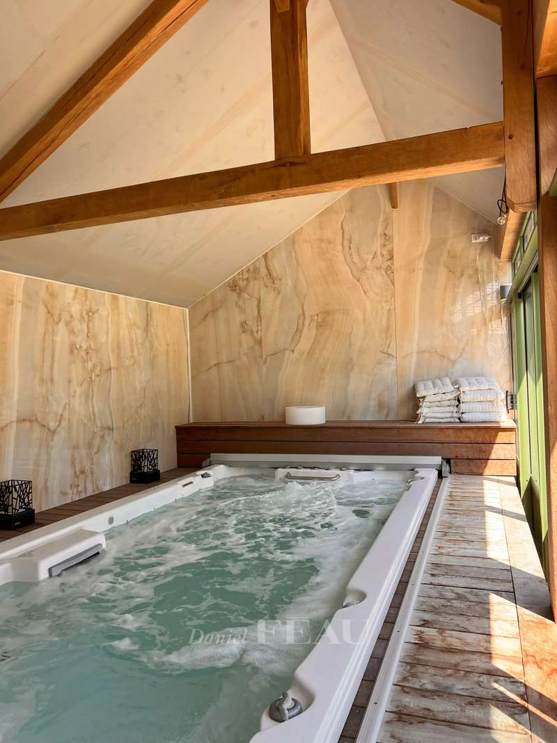 Ideally located a few steps from the Vieux Bassin, Daniel Féau Deauville presents this charming mansion, entirely enclosed by walls, in the heart of a quiet and unspoilt environment. On the garden level, the entrance opens onto a hallway with a dressing room, leading to a spacious open-plan area comprising a living room, an open-plan fitted kitchen and direct access to a cellar in the basement. A bright veranda, converted into a living and dining room, extends the living space outdoors. A suite on the same level with a dressing room and shower room completes this floor. On the first floor, a master suite has a bathroom with a bath and shower. A workshop room with a sink, two bedrooms with storage space, a separate shower room and separate toilets make up this floor. On the second floor, you will find two additional bedrooms, a bathroom, separate toilet, and a large games room with mezzanine, shower room and toilet. The property opens onto an intimate garden with a swim spa, ideal for moments of relaxation. A double garage completes this rare property, combining space, comfort and elegance in the heart of one of the most sought-after towns on the Normandy coast. Information on the risks to which this property is exposed is available on the Géorisques website: www.georisques.gouv.fr In accordance with the TRACFIN law, you will be asked to provide proof of identity for any visit.