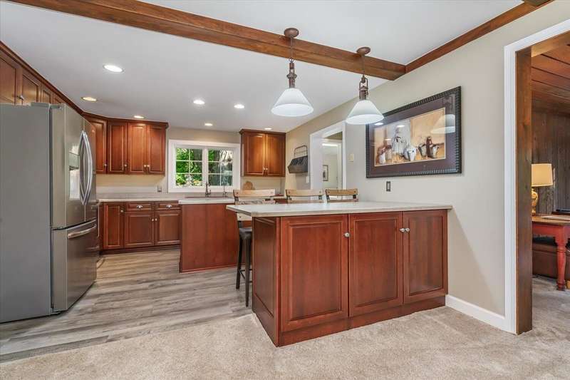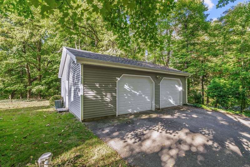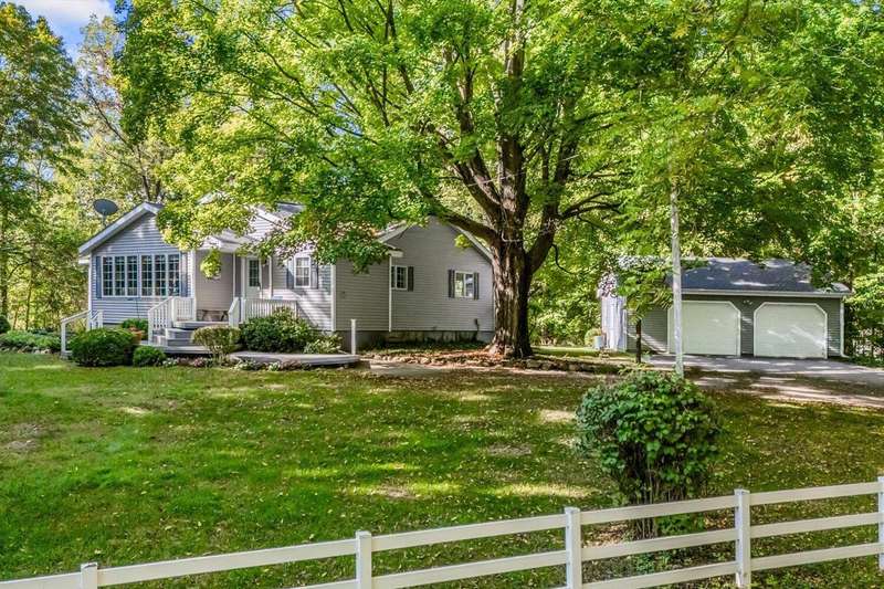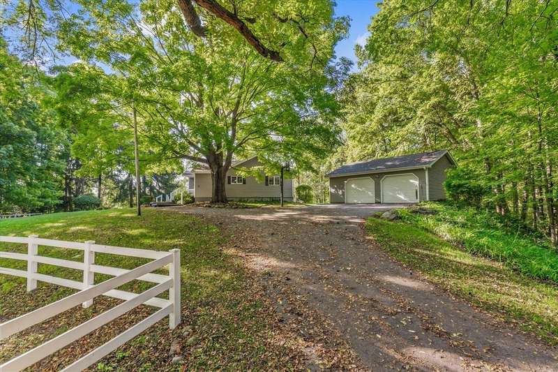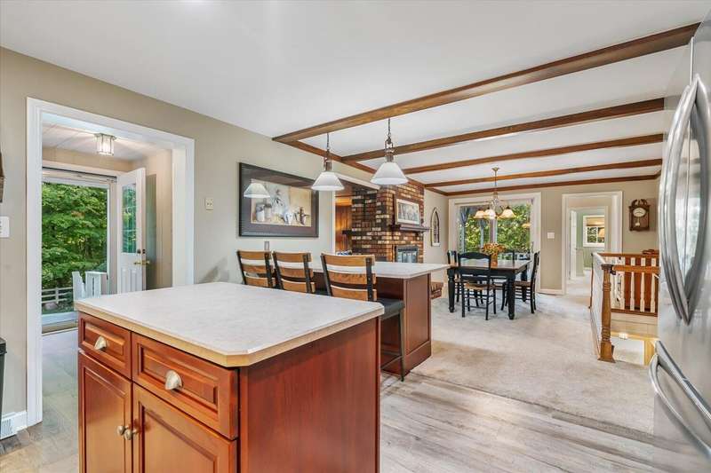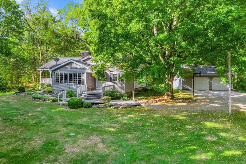 Spectacular 40 acres with an abundance of natural beauty is the setting for this well maintained home. Terrific floor plan for entertaining or activities. Large living room with hardwood floors and an attractive brick fireplace. Excellent working kitchen with ample counter and cabinet space and a center island breakfast bar. Spacious primary bedroom with double closets highlights the 3 bedrooms, all of which are good sized. Finished lower level offers a living room/rec room plus ample storage. Large outbuilding has heat and electric. Enjoy this breathtaking setting from the large deck.