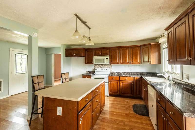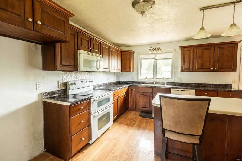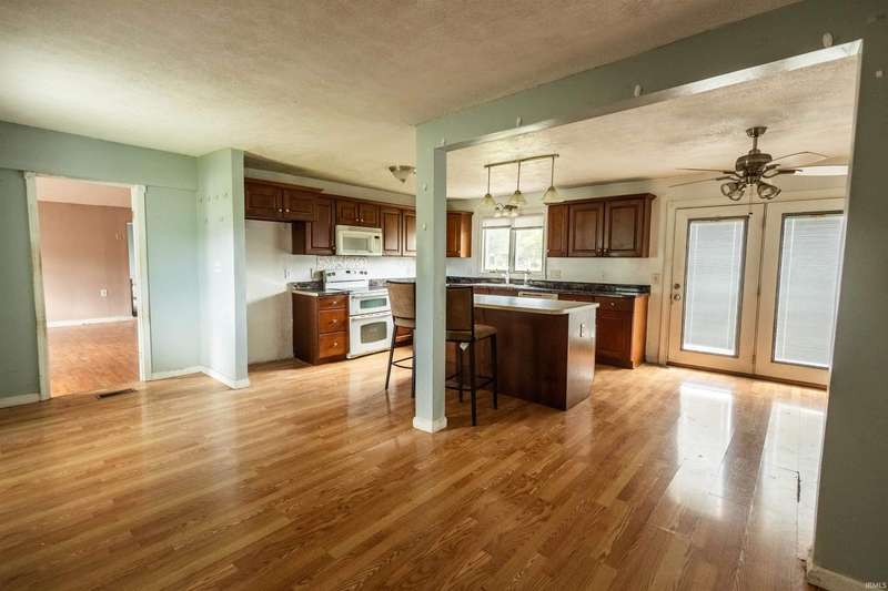 WELCOME HOME to your THREE to FOUR bedroom, TWO bathroom ranch conveniently located on a corner lot! As you pull up to your asphalt driveway, you will notice the beautiful front lawn which could be a great prospect for landscaping. Step inside to be greeted by your open concept living room, dining room, and kitchen area. Your kitchen offers lots of natural lighting and access to your back deck. To your right, you will find your half bathroom and laundry area. A little farther down the hall, you will also find your master suite with a bathroom the size of most guest rooms which has a garden jet tub and a his and hers walk-in closet. As well as another bedroom and full bathroom. The other end of the home features a spacious family room, as well as an office area and two other rooms which can be repurposed as additional bedrooms. Step outside to find your spacious backyard perfect for a family barbecue night. You also have a one car detached garage. Some of the recent updates include: Siding in 2023, electrical, plumbing, and HVAC in 2020. Utility averages are: Duke ($150/month), Vectren ($18.18/month), and Mitchell City Utilities ($60/month). This home has the possibility of qualifying for 100% USDA financing. Come check out this lovely ranch today!