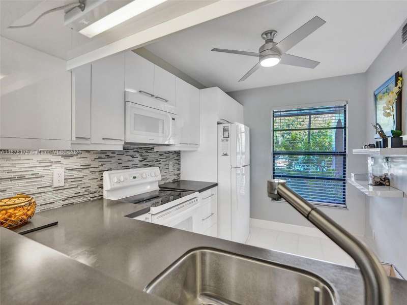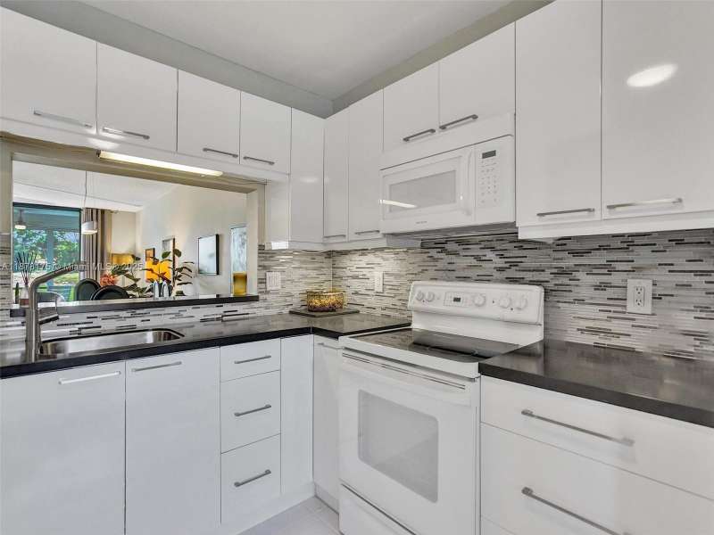 Beautiful & completely remodeled unit with new kitchen with white cabinets, grey countertop and modern backsplash.Wow! Wait until you see those 2 bathrooms also! Tile floor throughout, this one will sell all furnished and turnkey with everything you need. Directly on the 1st floor with your own Washer & dryer inside the unit (on the porch). Park right in front (easy access). Extra large screened porch with access from the master bedroom and from the living room with serene views on the water and the nature and on the unforgettable sunset. Rollers shutters for extra protection. The community has a nice community center, pool, gym, activities and more. Close to all restaurants and malls. Very nature and green, a must see!