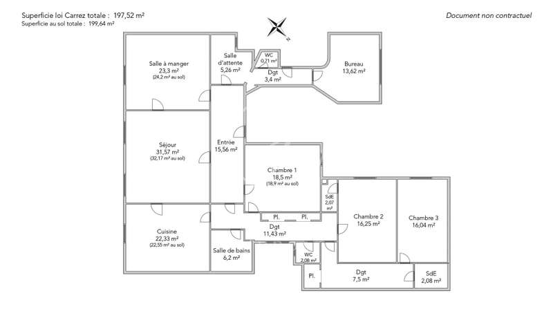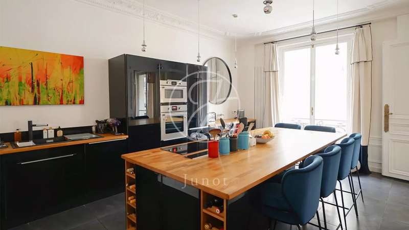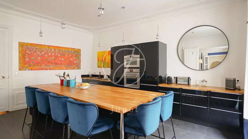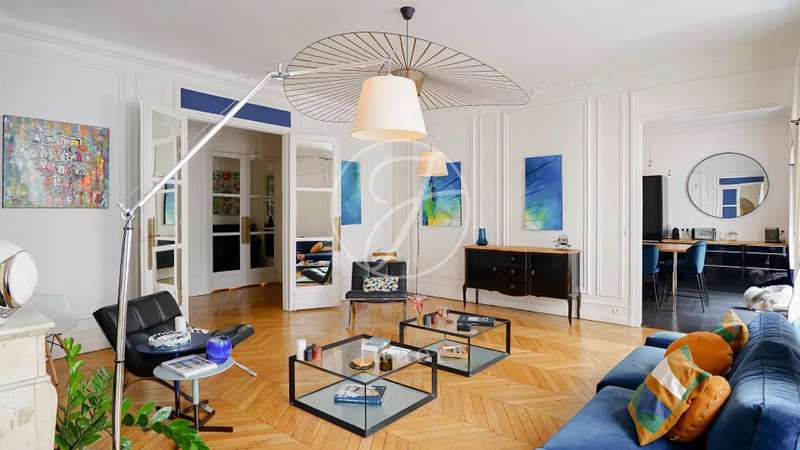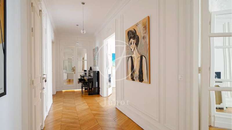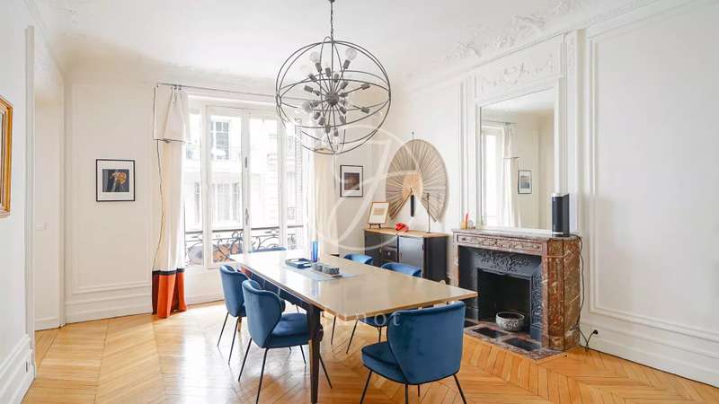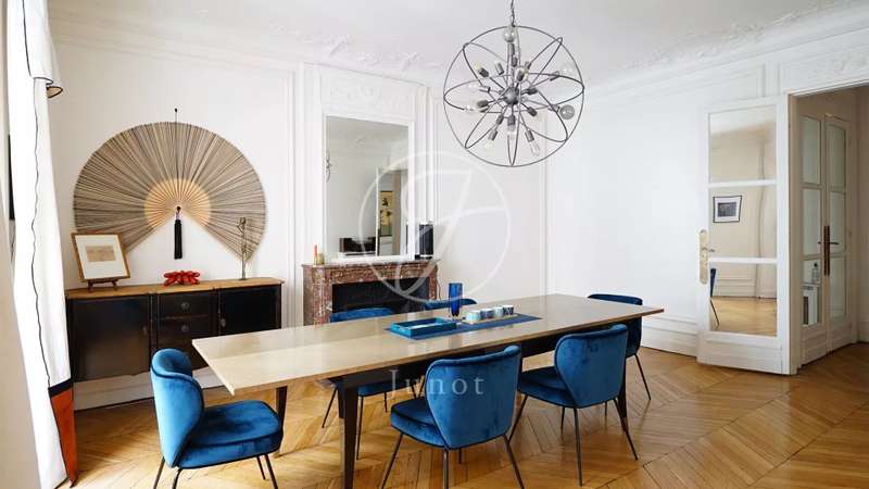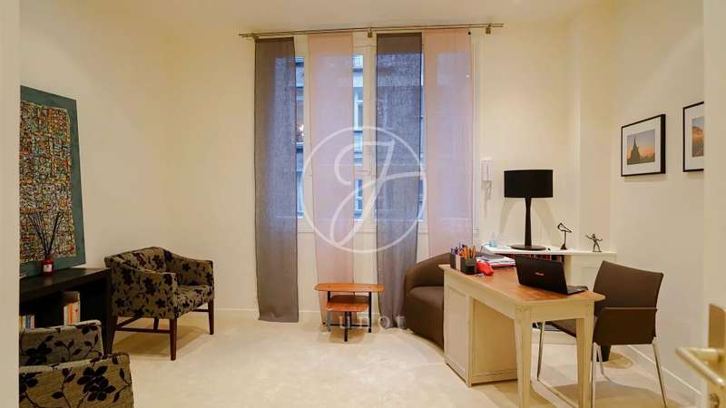 Nestled in the middle of a small, particularly sought-after cul-de-sac in the Duroc district of the 7th arrondissement, this magnificent 197.52sqm Carrez law through flat is on the first floor with a lift. This property is in very good condition and has been tastefully decorated. On the first floor alone, the entrance hall opens onto a sunny, south-facing triple reception room with very high ceilings of over 3.1 m (as is the rest of the flat). The classic features have been retained: parquet flooring, mouldings and fireplace. Three bedrooms, a bathroom, two shower rooms and a separate toilet can be found to the rear, overlooking a large, totally peaceful courtyard. On the other side of the entrance hall, also on the courtyard, accessible from the flat or independently (service entrance), is a space that could accommodate a liberal profession. It comprises a small waiting room, an office and a toilet. A cellar completes the offer.