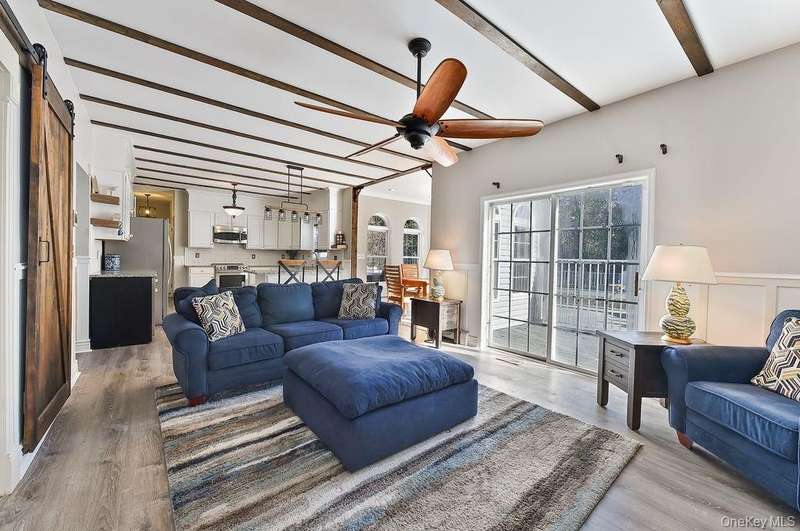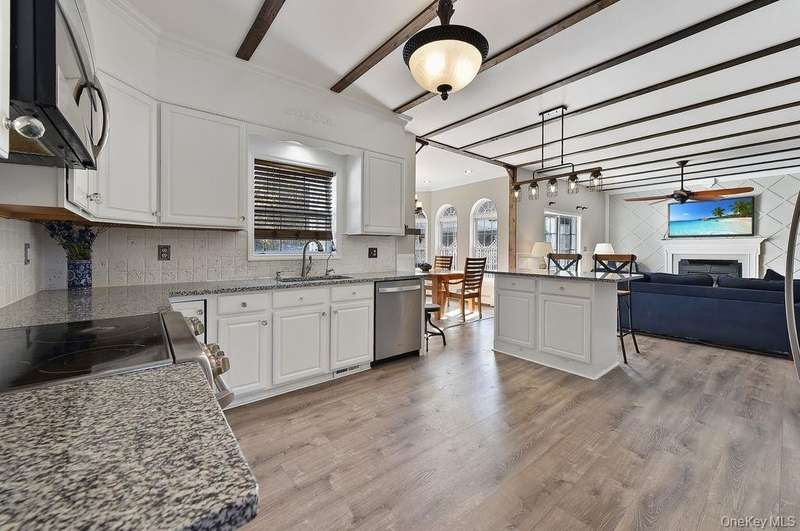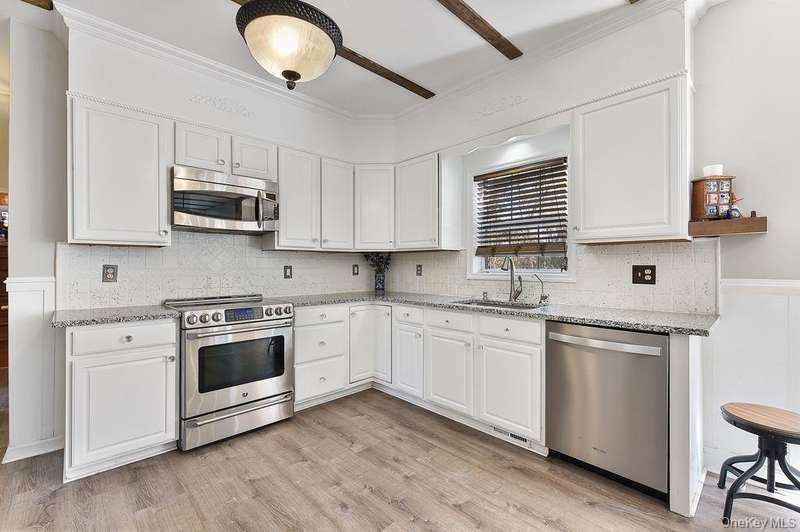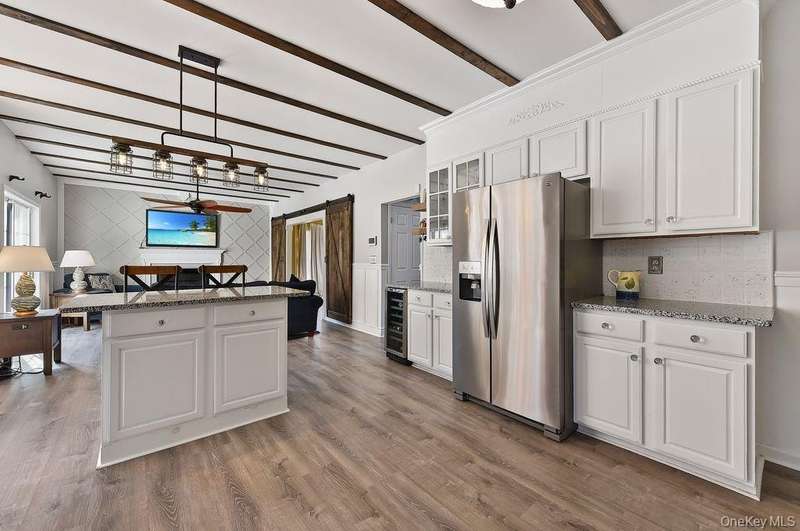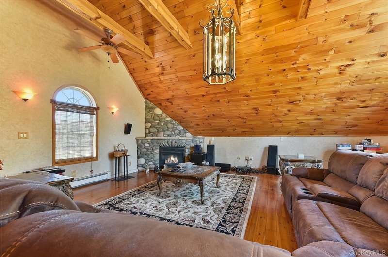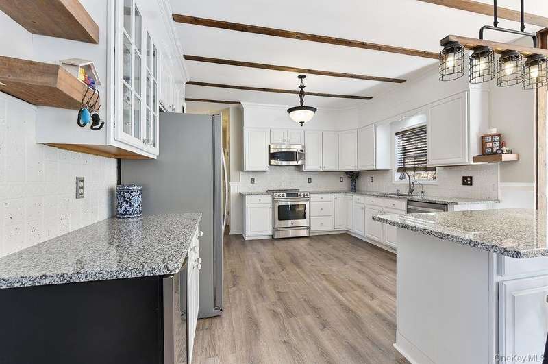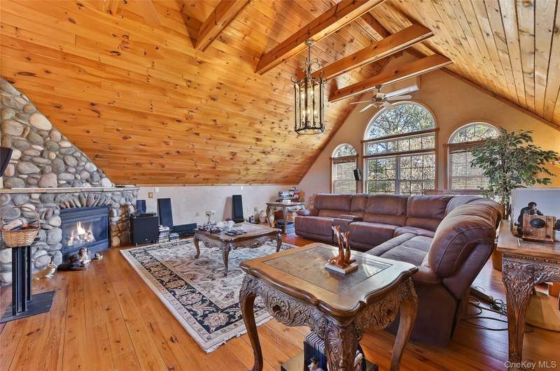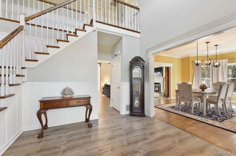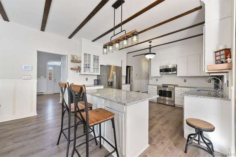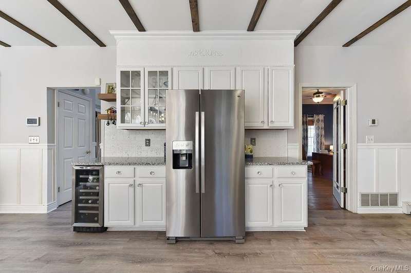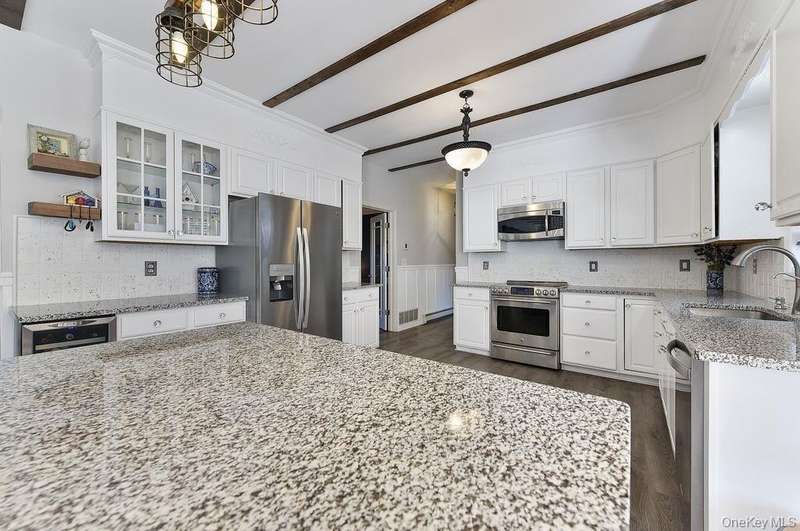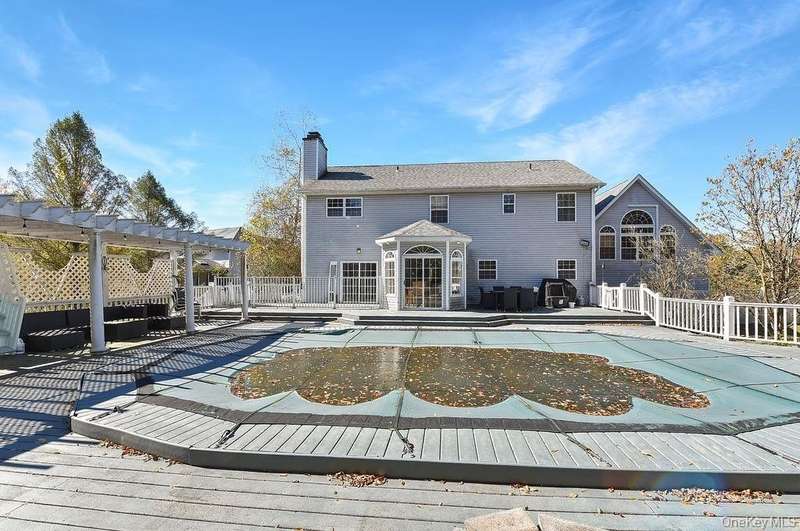 This spacious 4-bed, 2.5-bath home features a stunning kitchen with granite counters, stainless steel appliances, and a generous breakfast nook. The family room with fireplace flows into a formal dining room, complemented by a first-floor office or living room. The luxurious primary suite includes dual closets and a spa-like bath with quartz counters, updated tile shower, and Jacuzzi tub. A second-floor bonus room with knotty pine cathedral ceiling, wet bar hook up and fireplace is perfect for a playroom or movie nights. Designer touches throughout: renovated tile baths, beamed ceilings, ornate trim, and hardwood floors. The backyard oasis boasts a pool with Trex deck, hot tub, and pergola—ideal for summer entertaining. Relax on the front porch or enjoy a BBQ by the pool. Heating: Oil (Above Ground, decking around pool looks like in ground pool)-- Parking: 2-Car Attached Garage with EV Plug-Prime location: Private yet minutes from schools, shopping, and Taconic Parkway.