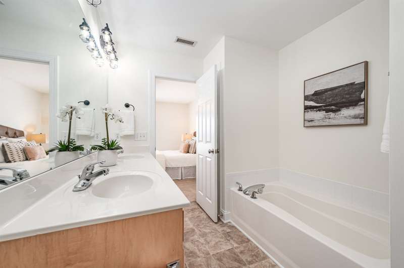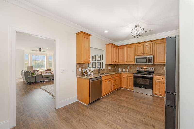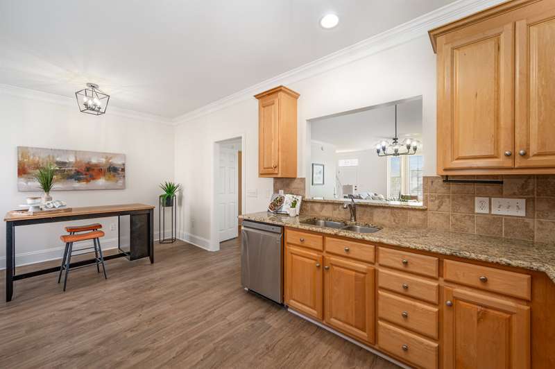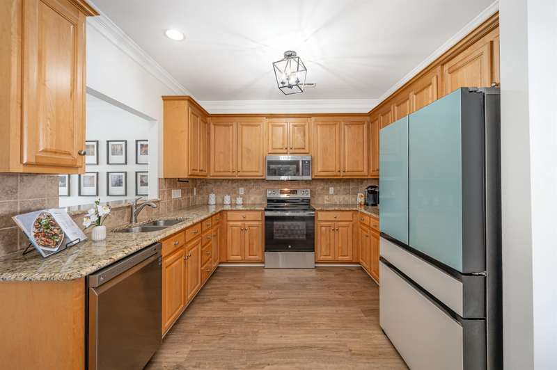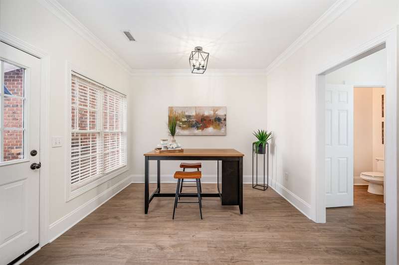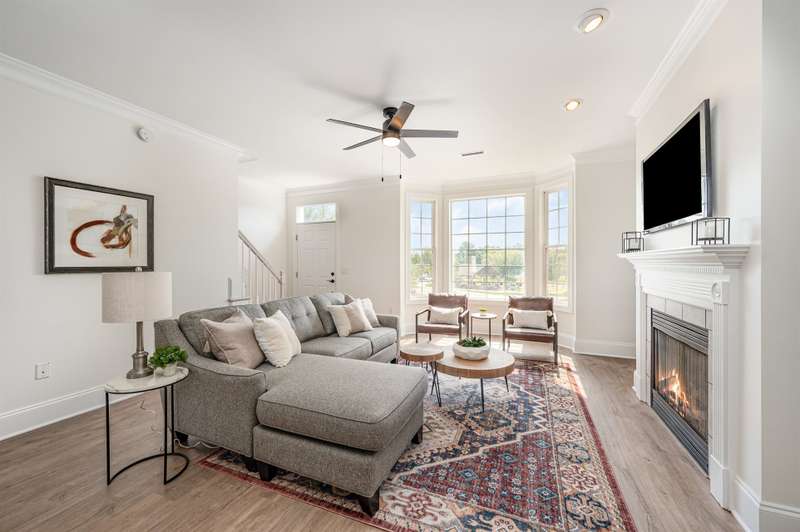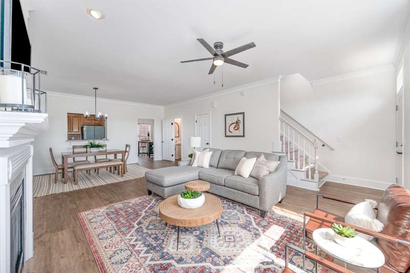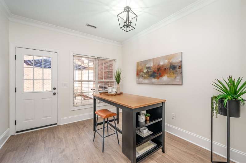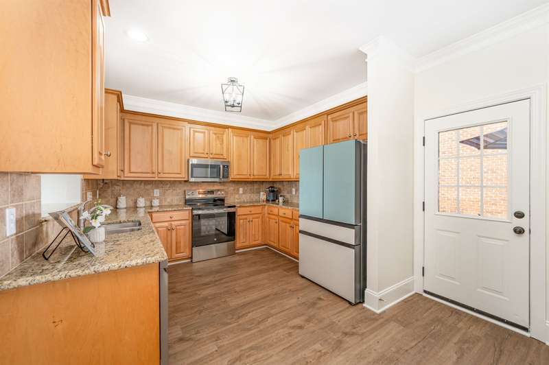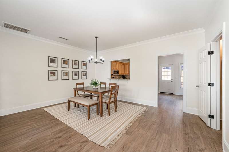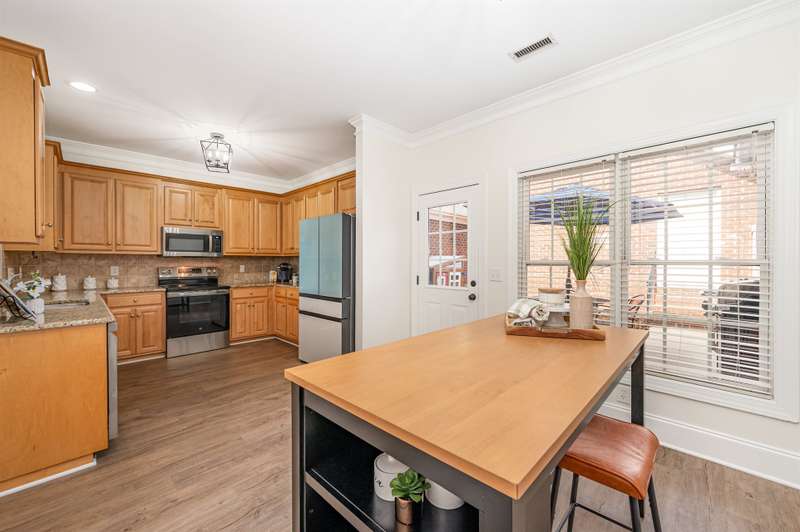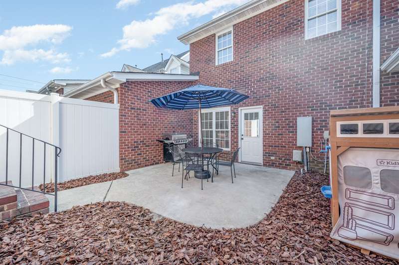 Refreshed townhome in sought-after Afton Village. Known for its inviting atmosphere, this neighborhood offers residents convenient access to local shops, restaurants, a wine bar, & recreation center ? all just moments from your front door. Directly across the street, James L. Dorton Park features a playground, tennis & pickleball courts, disc golf, sports fields, picnic shelters, & a scenic 1.1-mile trail connecting to the greenway. Inside has been refreshed with neutral paint in a modern, crisp white tone, new durable LVP wood floors, & sleek black lighting fixtures. The open great room soars with high ceilings & sunlight streaming in thru the front bay window. The kitchen shines with granite counters & updated appliances. The upstairs primary suite feels like a retreat with a walk-in closet, spacious bath with dual sinks & garden tub, & a private balcony overlooking the community park. Laundry is upstairs for ease (no toting laundry up & down stairs!), & the HVAC system was replaced in 2023 for peace of mind. A private, enclosed courtyard is the perfect extension of the indoor entertaining space. All of this plus a detached two car garage. Live stylishly, play actively, & enjoy community at your doorstep.