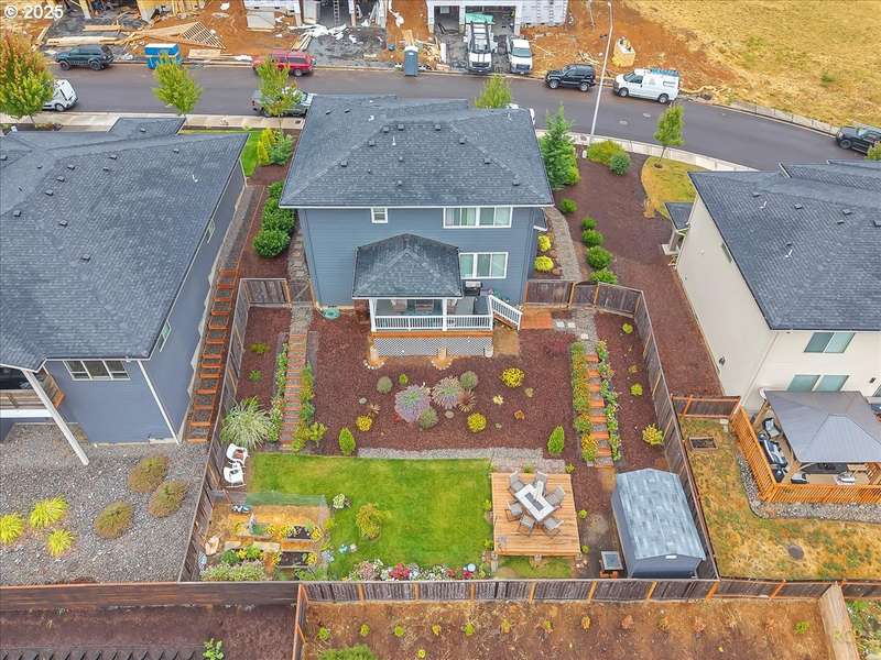 Offering exceptional quality and modern comfort, this gorgeous home showcases impeccable stewardship and thoughtful design. Bathed in natural light, it is truly move-in ready and offers abundant space for everyone with four comfortable bedrooms and a versatile main floor study. The living room features a welcoming gas fireplace and a ceiling fan for year-round comfort. The adjoining dining room has a sliding door to the covered deck, creating a seamless flow for entertaining and relaxation. The modern kitchen has a large quartz-topped island, gas range, stainless appliances, pantry, and a convenient eating bar—perfect for both everyday meals and special gatherings. The primary suite includes a ceiling fan, a spacious walk-in closet, and ensuite bath with double sinks and an oversized full tile step-in shower. The convenient upstairs utility room is equipped with built-in cabinets for storage and organization. Central air conditioning ensures comfort throughout the seasons. Beautifully landscaped grounds include a sprinkler system, fenced backyard, sundeck that extends your outdoor living space, garden area, and a tool shed for additional storage. Ideally situated in Elk Ridge Estates-St. Helen’s premier new community with territorial views and a sought-after lifestyle and just a quick 35-minute drive to the Hi-Tech corridor and PDX.