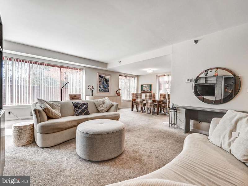 Rarely Available! Fabulous opportunity for private outdoor space while living in a 2 BR & den condo in a gated, secure, service building with a private, brick enclosed patio & garden! This main level condo is located just steps from the lobby while offering total privacy within. This residence offers all neutral decor, eat-in Kitchen with window, open Living Room & Dining Room , private Den, 2 full baths, in unit laundry & storage room as well as a convenient garage space and separate storage area. The Primary Bedroom includes a wall closet, walk in closet and Primary Bath with jetted tub and separate shower. The patio can be accessed through the Living Area and 2nd Bedroom. The HVAC has been recently replaced! Enjoy easy Living with no steps or need of elevator while enjoying a gated community with community center & pool, tennis courts & more! Condo fee includes a $250 assessment until Dec. 2026. Parking space P71, storage locker #59