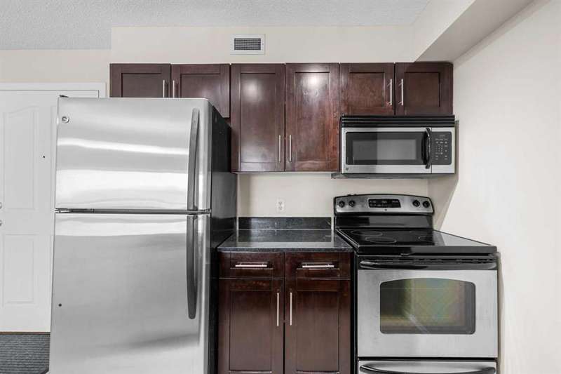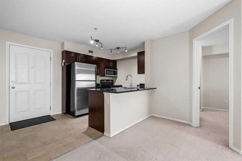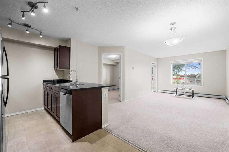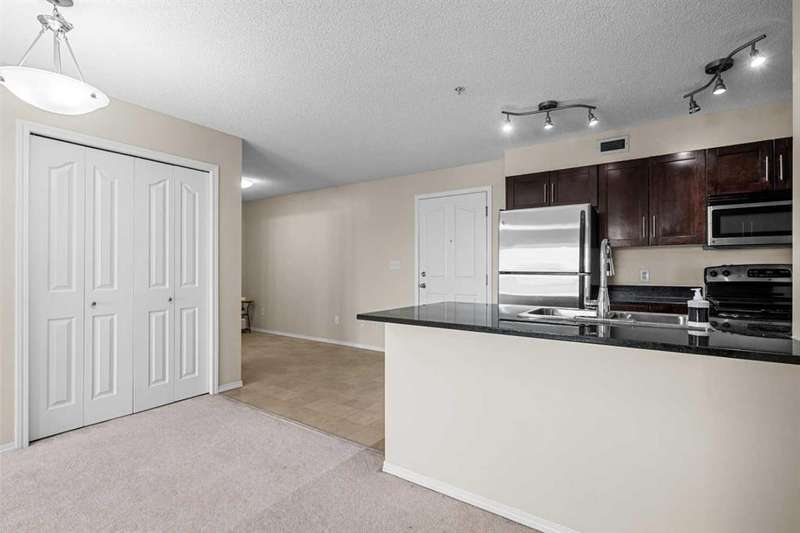 Welcome to this beautifully maintained condo at Saddle Ridge with Low Condo Fees. This second floor unit boasts 2 Bedrooms, 2 Bathrooms (one being a 4-piece ensuite bathroom) plus Den which is perfect for an office or study area. Enjoy your ease of access as this unit is only a few steps away from the stairs which leads you directly to the exit and it's titled heated underground parking. The unit also features a spacious living room perfect for family and friends to gather. In the living room, you'll find your in-unit laundry which is wonderfully enclosed for space efficiency and aesthetic. The kitchen is equipped with an island with granite countertops, stainless steel appliances and lots of storage and cabinetry. Step outside and you'll find yourself on your own private balcony where you can enjoy some fresh air and amazing view. This condo is within walking distance to shopping, groceries, school, park, bus stops and train station. If you are looking for your first home, investment or even to downsize this unit might just be for you. Book your private showing now.