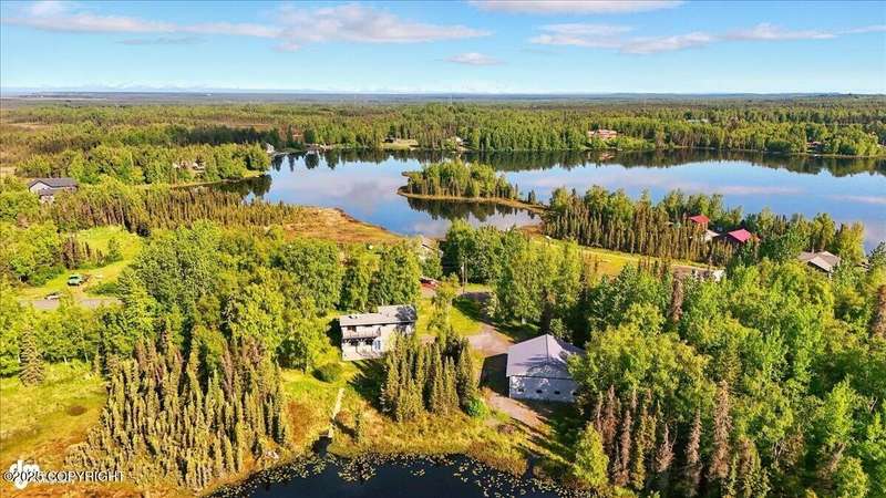 LAKE HOME+HANGAR! The home is ready for your updates, large hangar/shop all located on Moser Lake, near Sport Lake! House has 700 sqft unfinished basement & two-car garage! The hangar is accessible to planes from the lake & has ceiling-mounted hoisting system capable of turning a plane 180 degrees. There is a 3rd lot of 2.88 acres, that is no land just lake! Tons of wildlife!